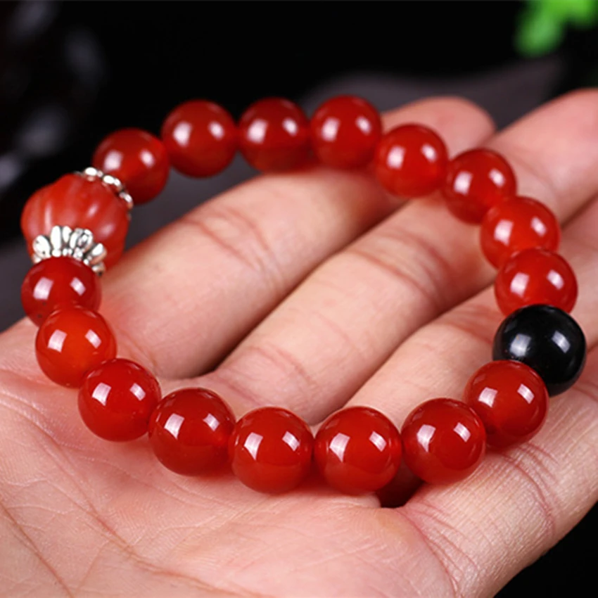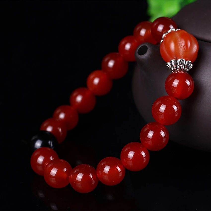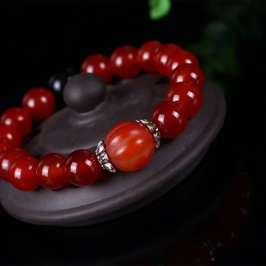 8mm Natural Red Agate Bracelet Femme Natural Stone Red Beads Bracelet Flame Pattern Mens Bracelets For Women