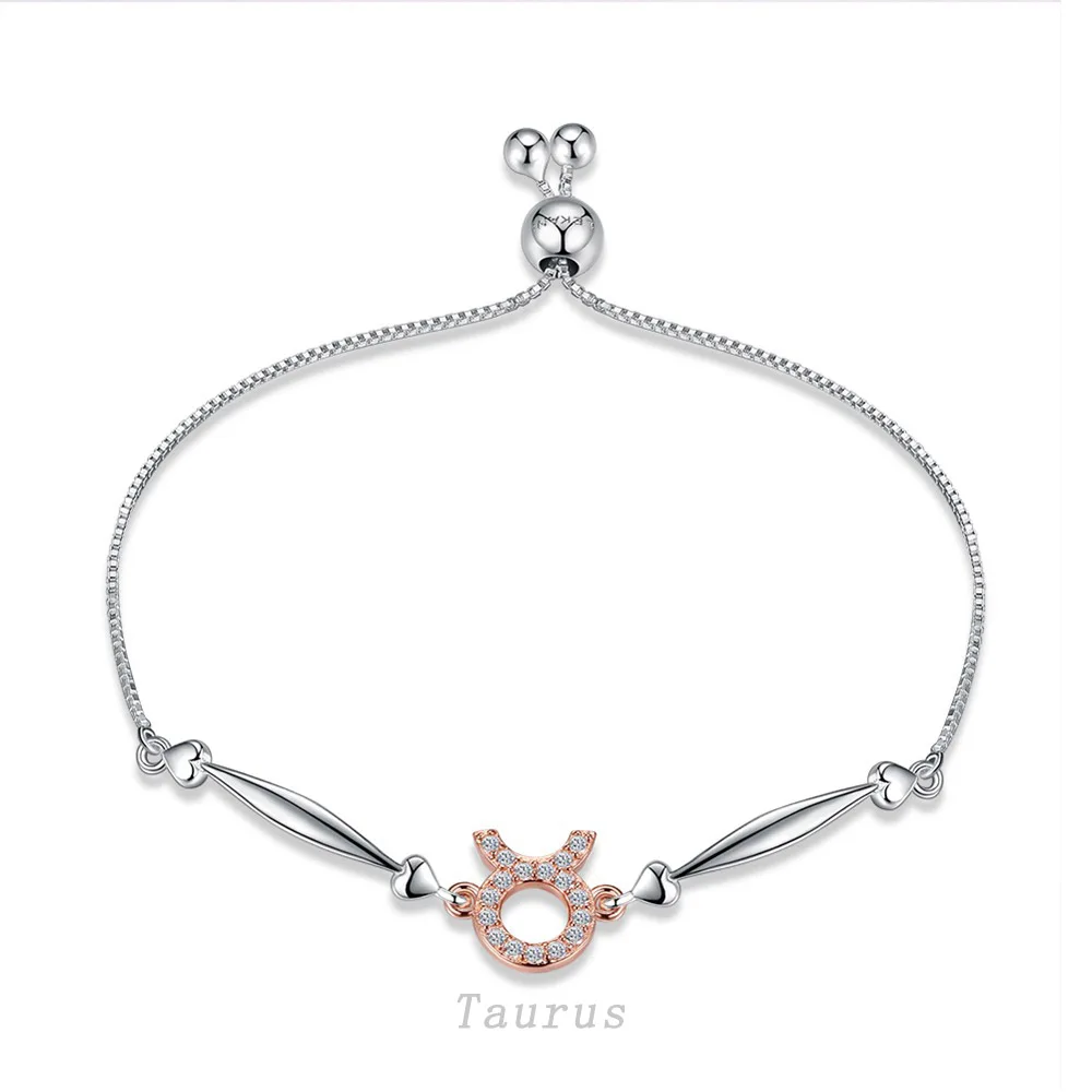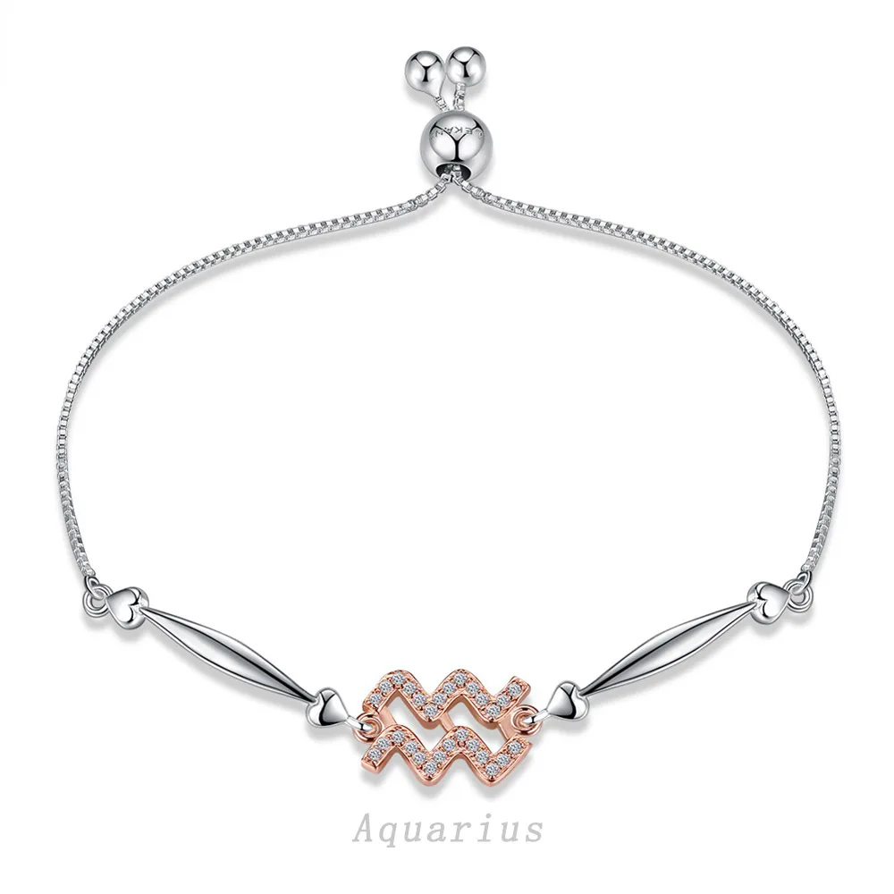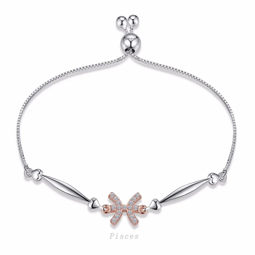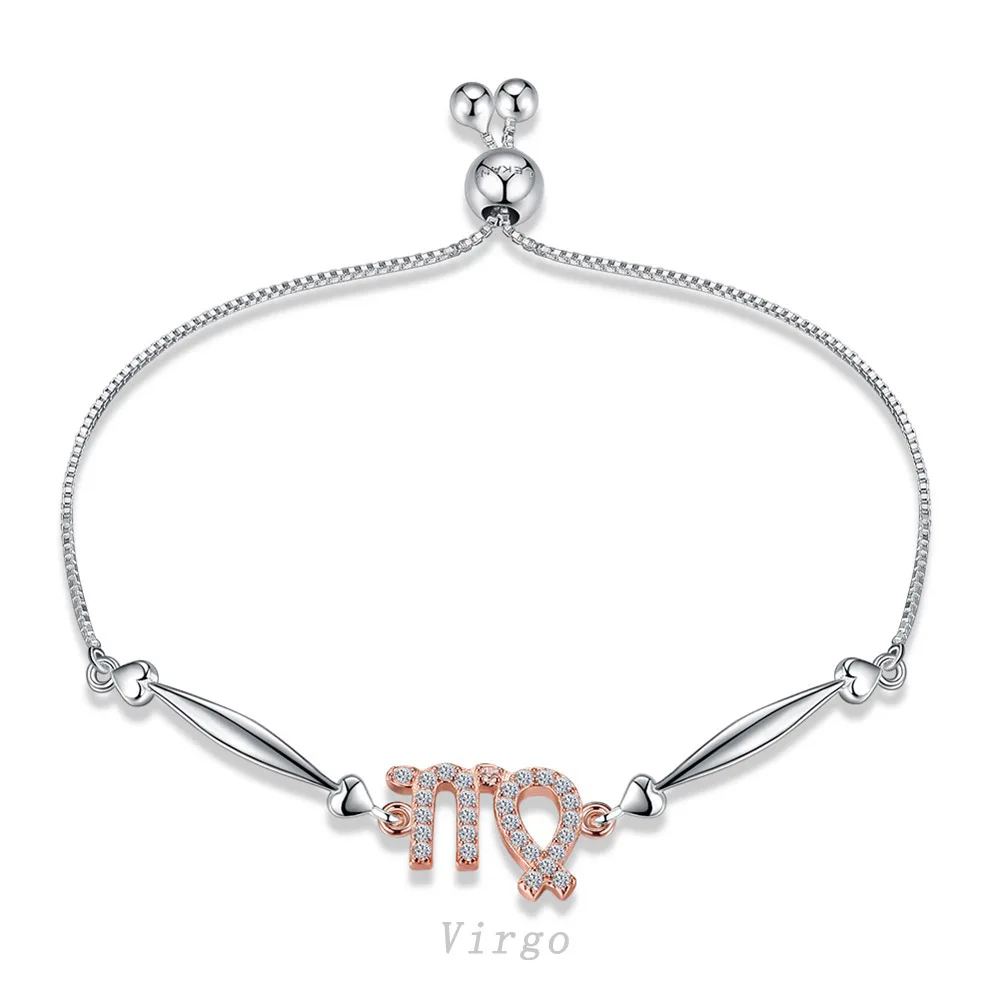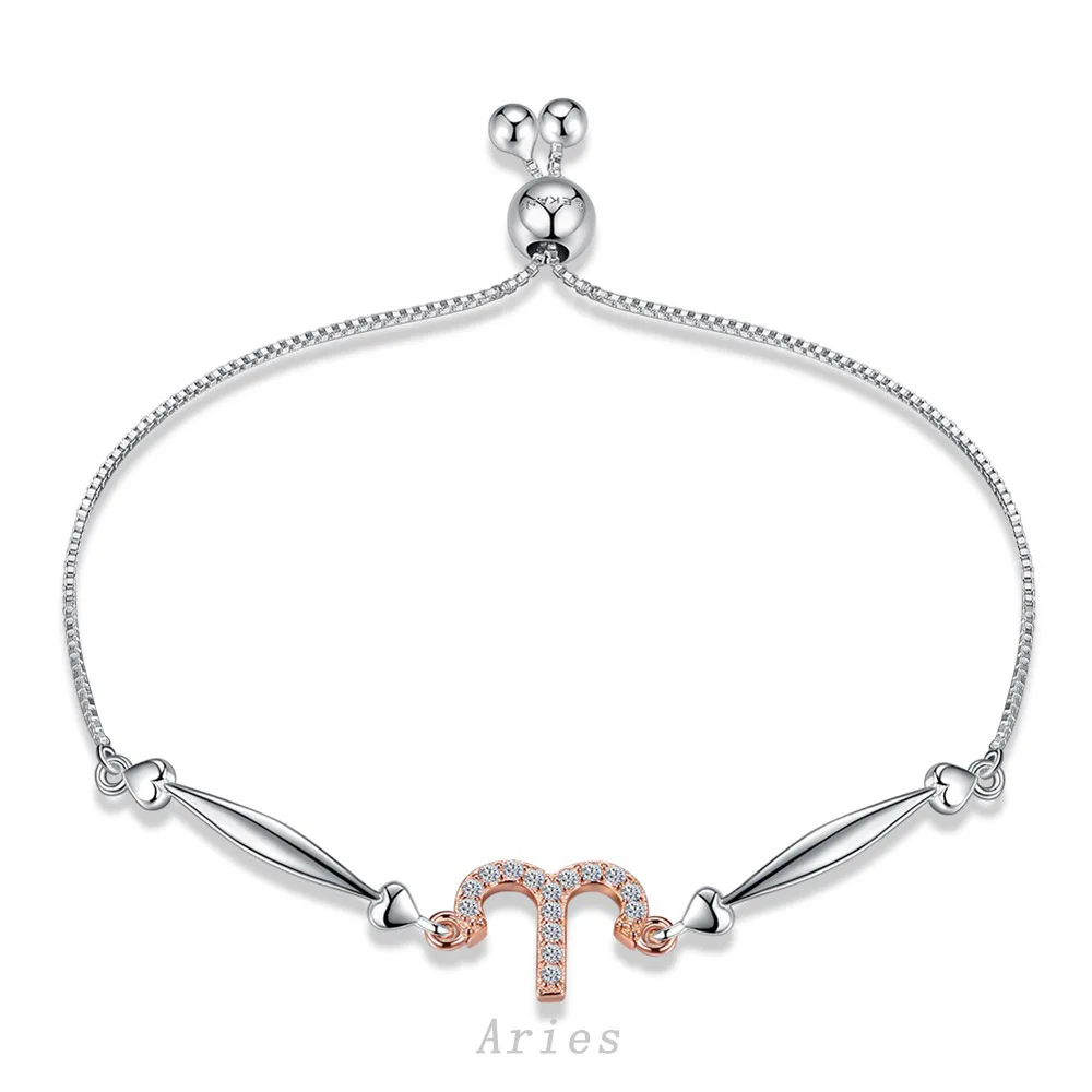 925 Sterling Silver Aries Virgo Sagittarius Aquarius Pisces Taurus Signs of the Zodiac Female Bracelets Length: Adjustable