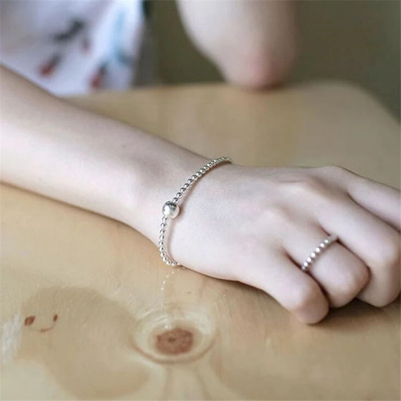 925 Sterling Silver Bracelet Ball Chain Genuine Solid Silver Fashion Women Round Bracelets Bangles High Quality BSW427