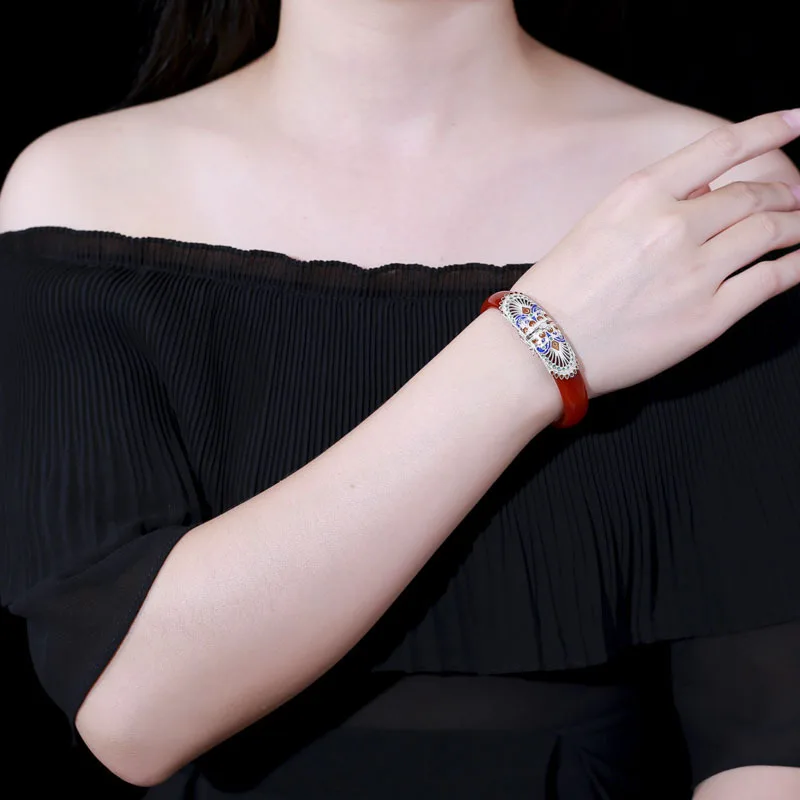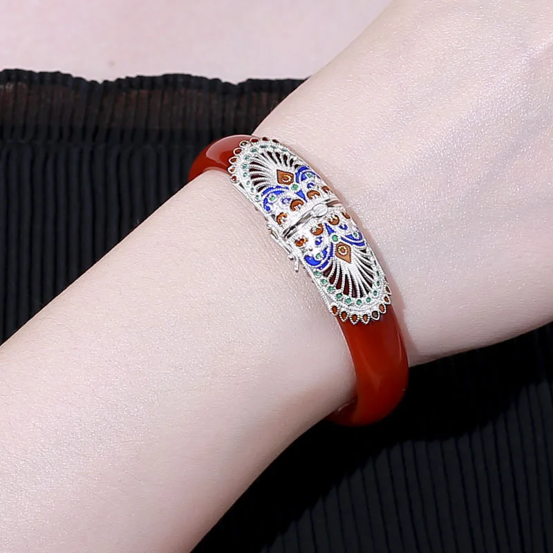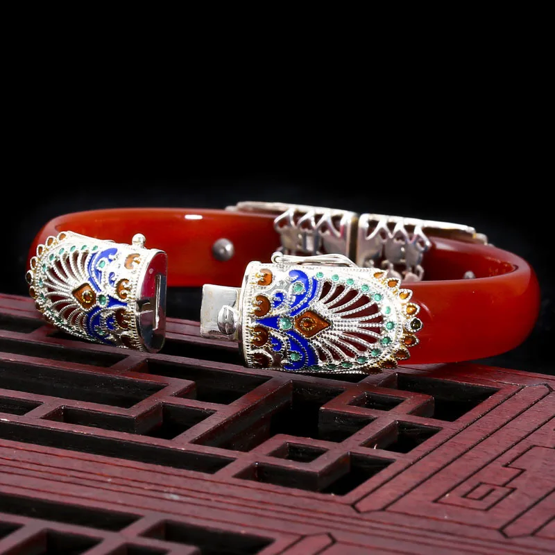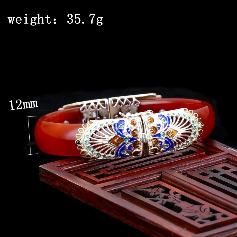 925 sterling silver red agate bangles red handmade ethnic natural 35.7g red agate enamel bangle for women agate jewelry charms