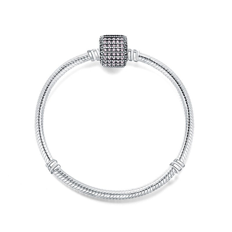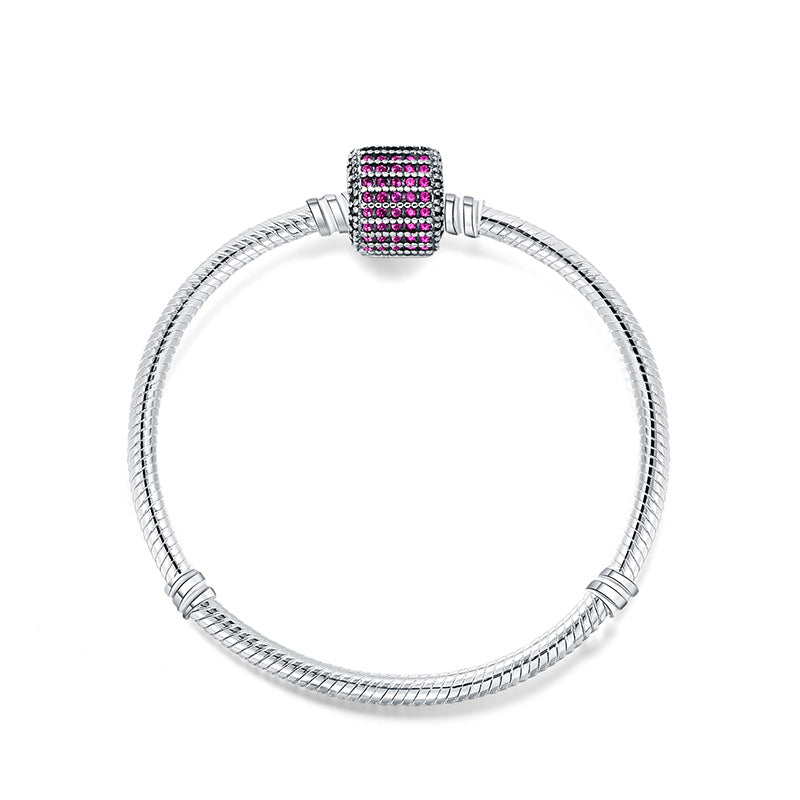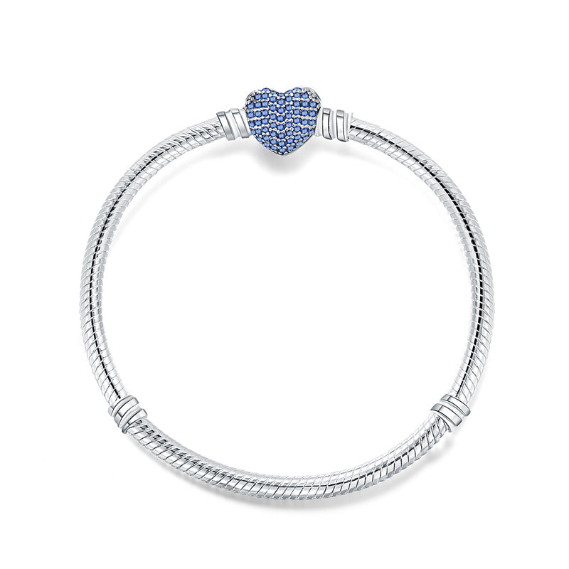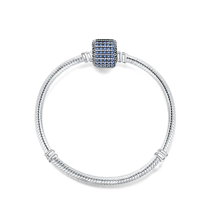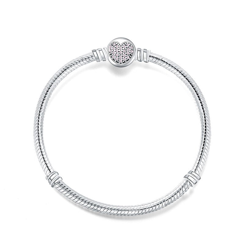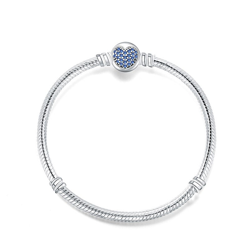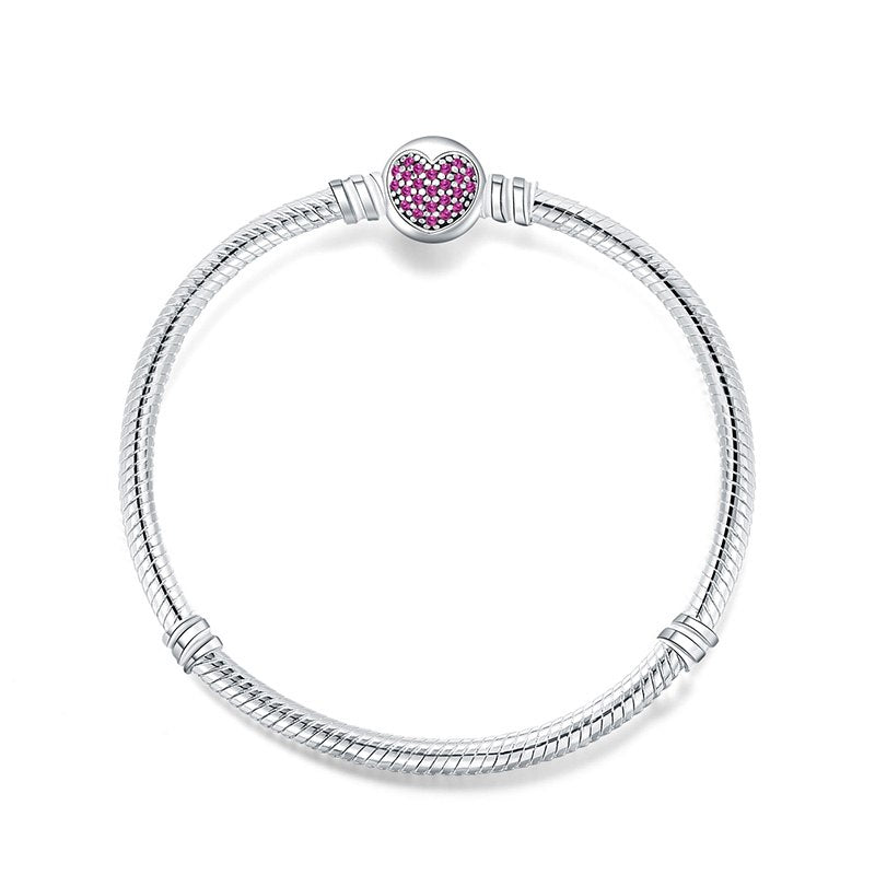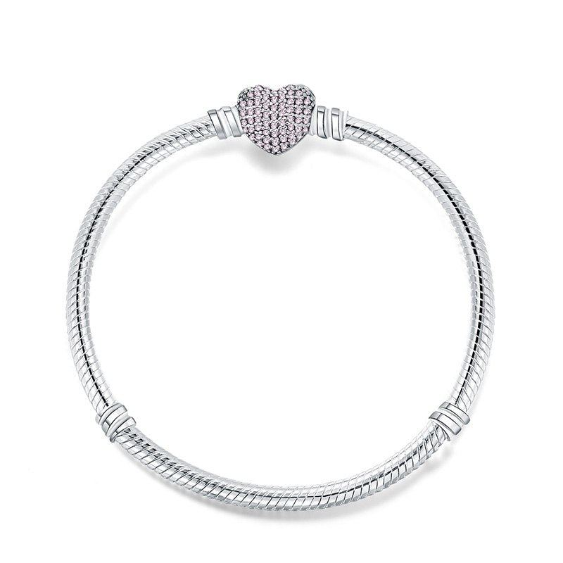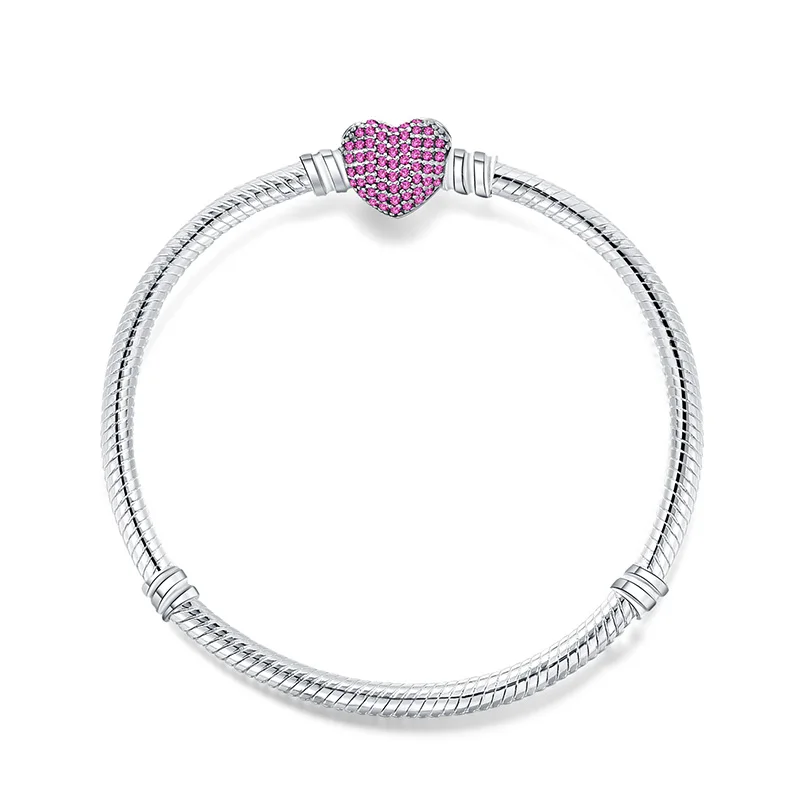 925 Sterling Silver Snake Chain Basic Bracelets Charms Heart Clip Blue Pink Purple Crystal Clasp Fit Women Diy Bracelets