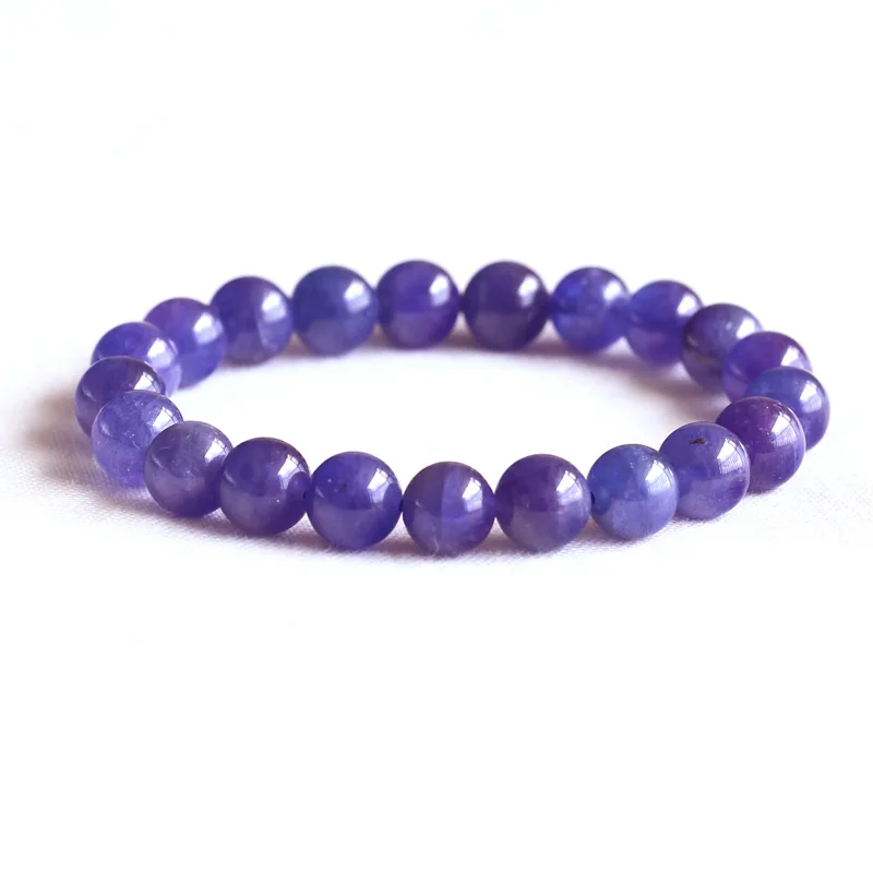 AAA High Quality Natural Genuine Tanzania Clear Purple Blue Tanzanite Stretch Finish Bracelet Round beads 9mm 05082