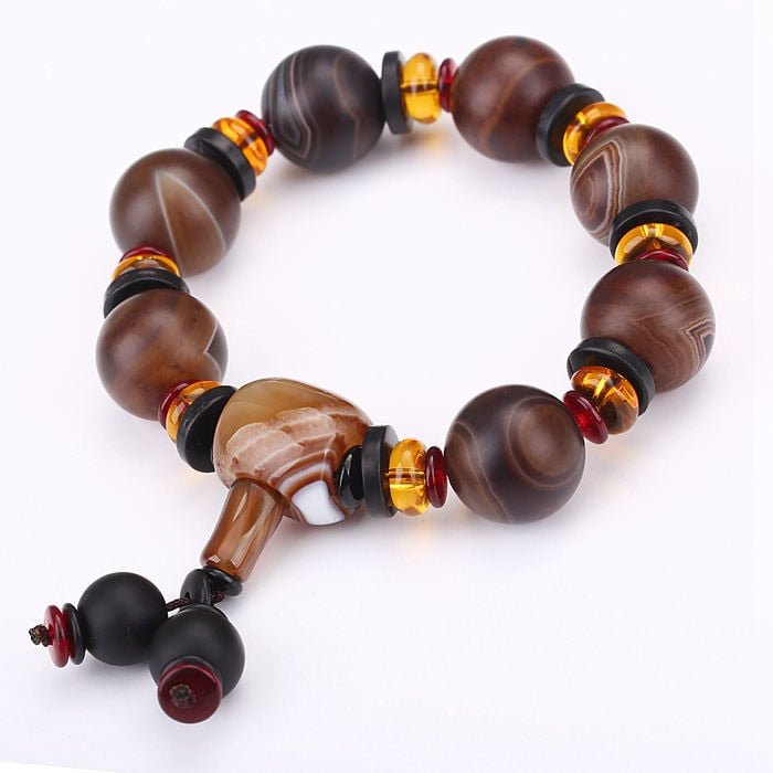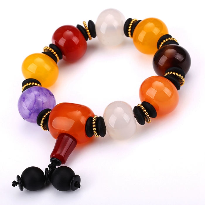 AAA Natural Round Stone Agate Beads Bracelet Healing Crystal Classic Amber Health Beads Elasticity Rope Men Women Bracelet Gifts