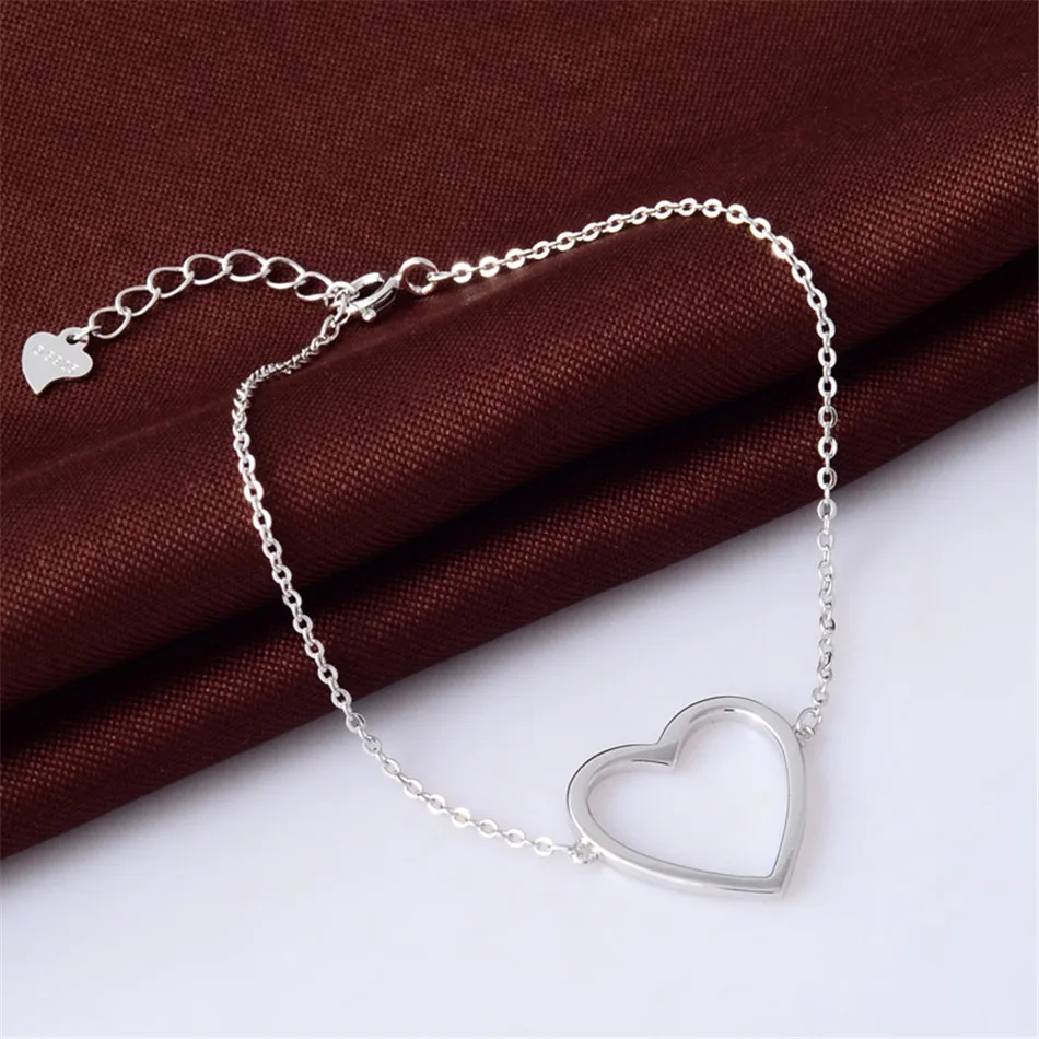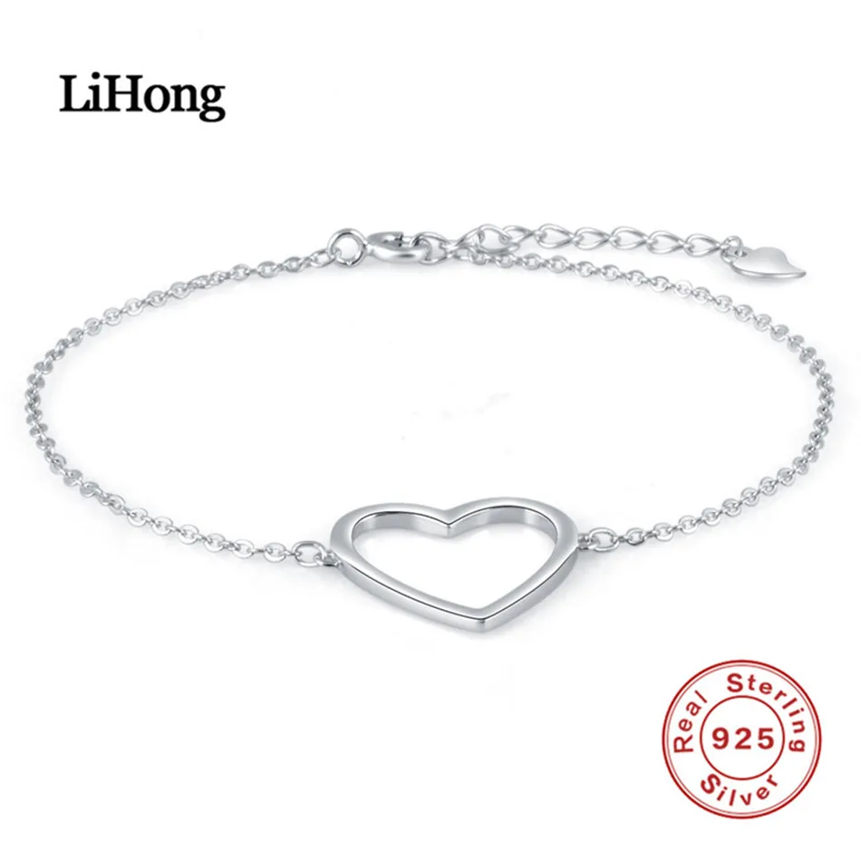 Authentic 925 Sterling Silver Heart Bracelet Rose Gold/Silver Color Adjustable Link Chain Bracelets Jewelry