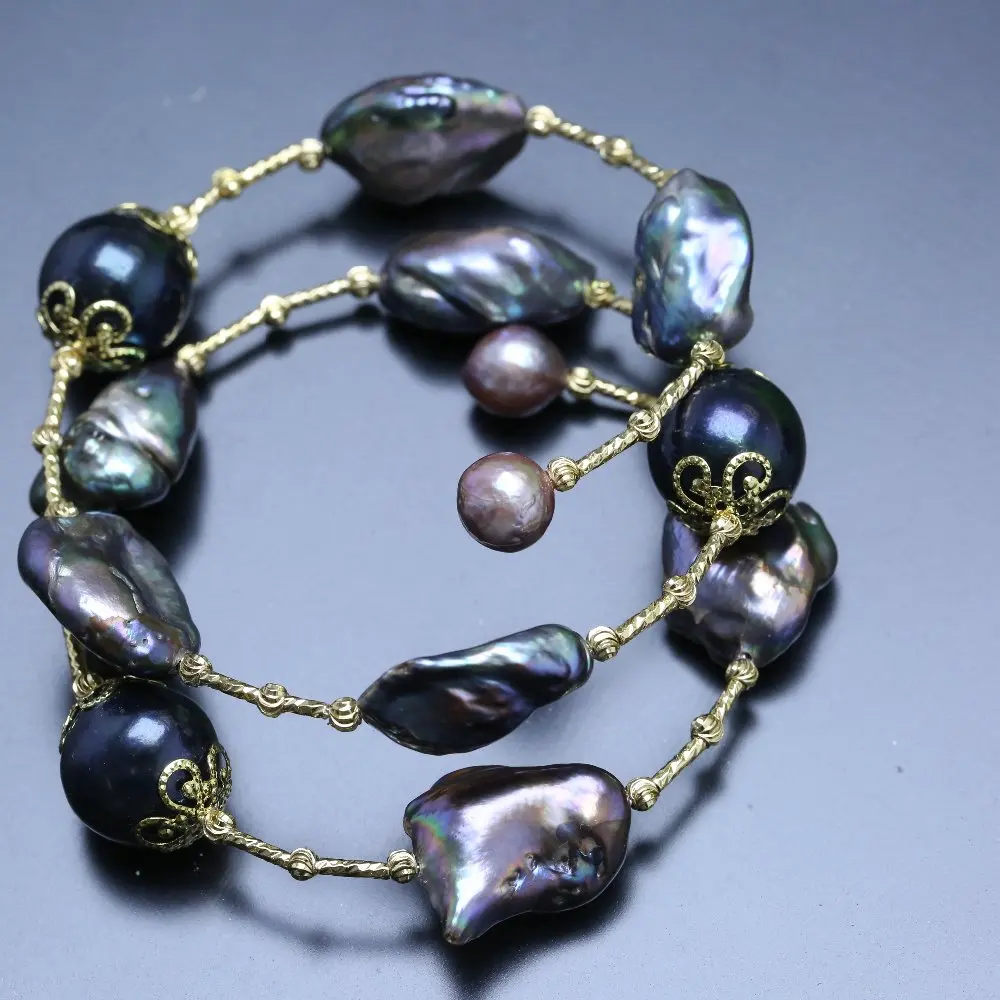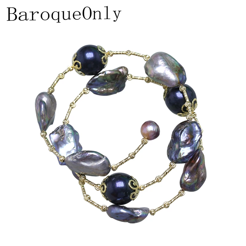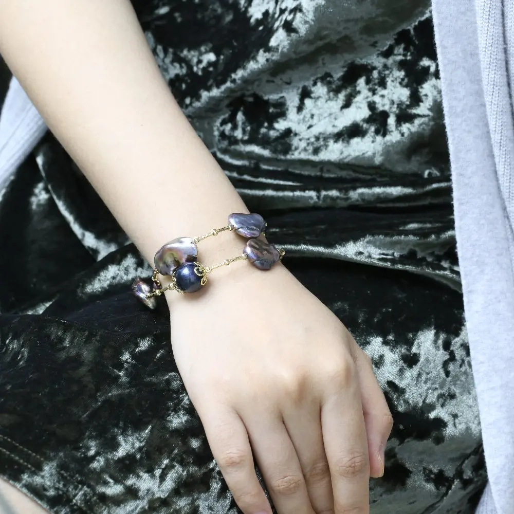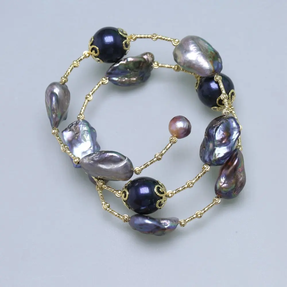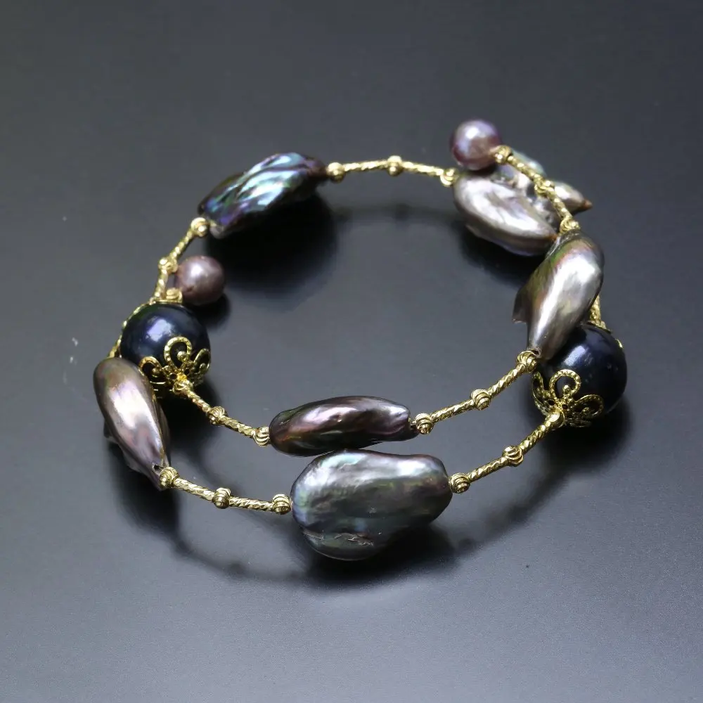 Deep Colour Mixed-colour Baroque Natural Pearl Bracelet No Buckle (2-3 times around wrist of any size)