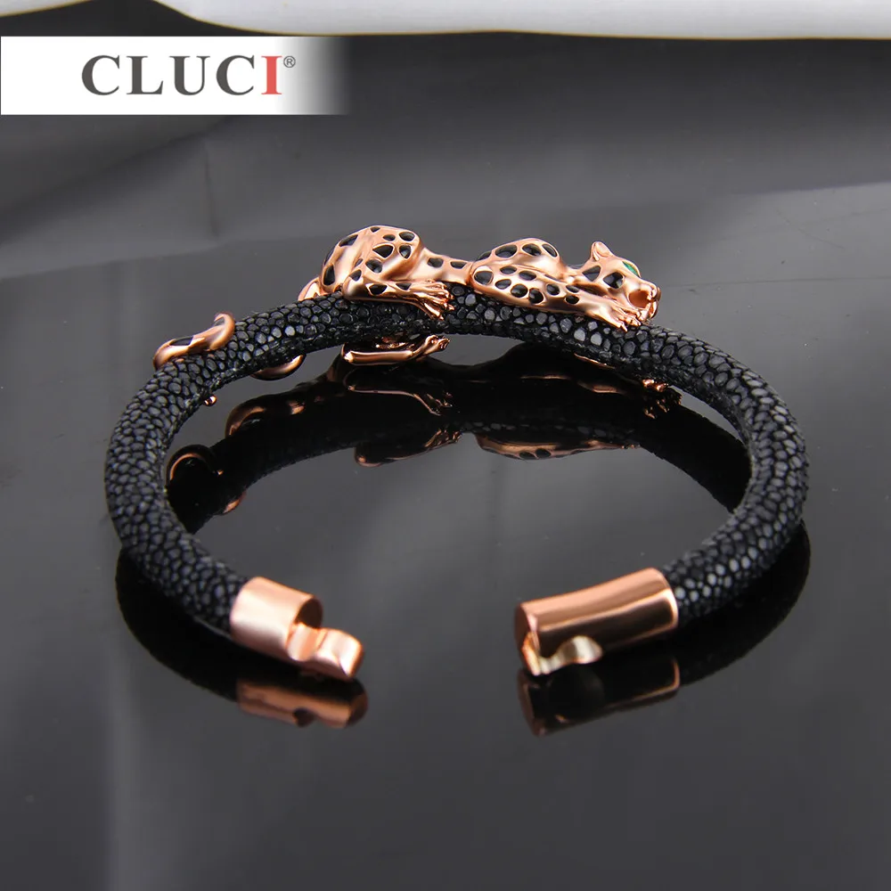925 Sterling Silver leopard Bracelet with magnetic buckle Father's D Gift Real Leather Bracelet Statement Party Jewelry