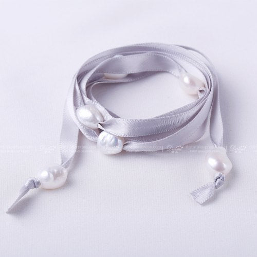 9-10mm Natural Baroque Pearl Bracelet 100cm DIY Style White Pearl & Silk Ribbon Bracelet