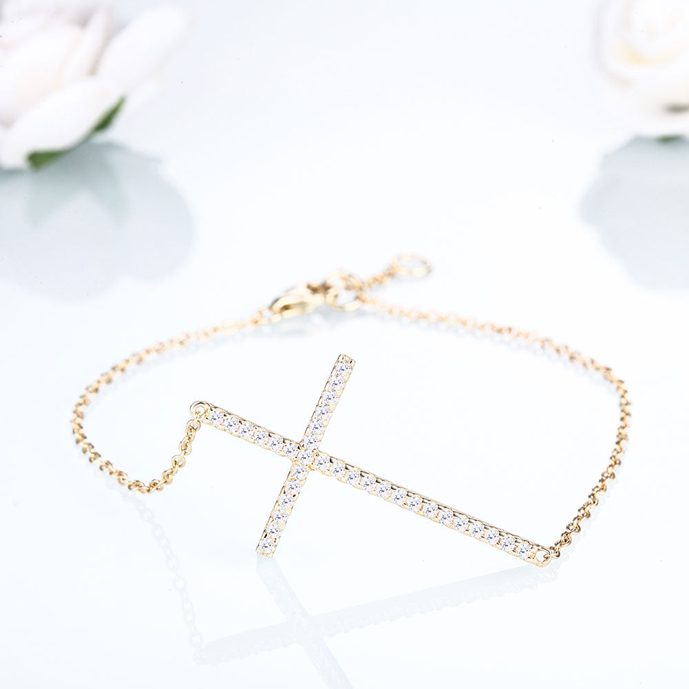 DOUBLE-R Created white Topaz cross Bracelets Soild 925 Sterling Silver Golden Bracelets Fine Wedding Jewelry