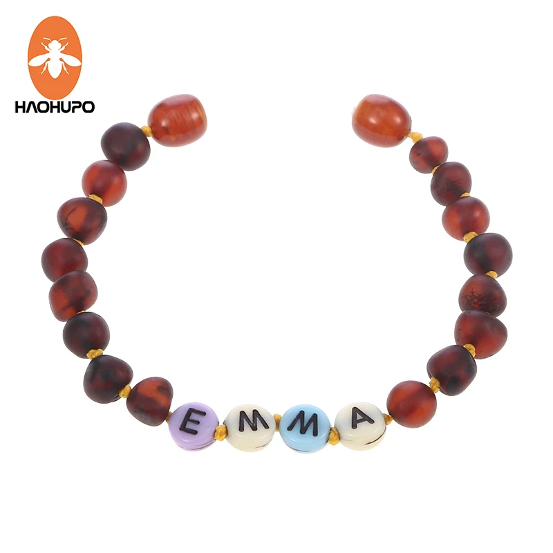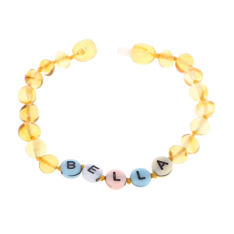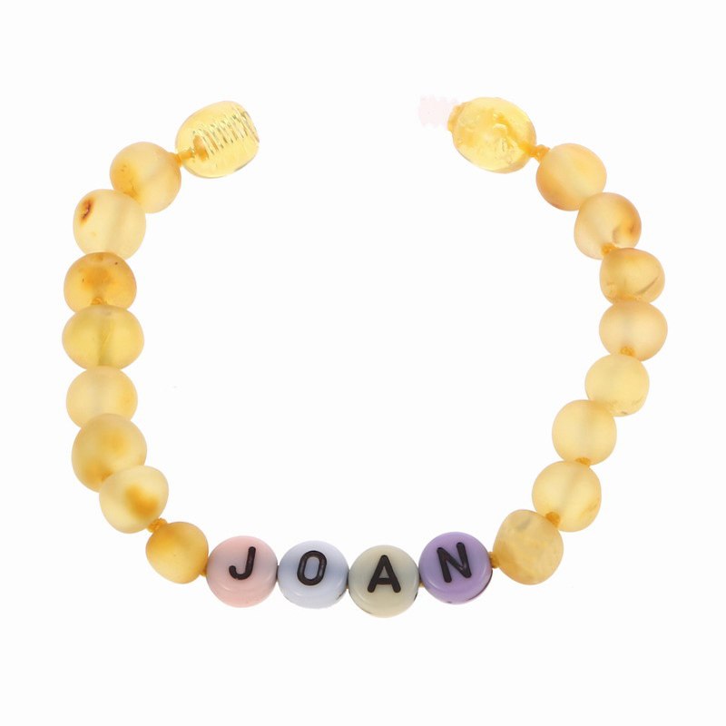 Custom Name Amber Jewelry Baltic Amber Teething Bracelet Anklet with BABY'S NAME Unique Children Natural Jewelry Gift