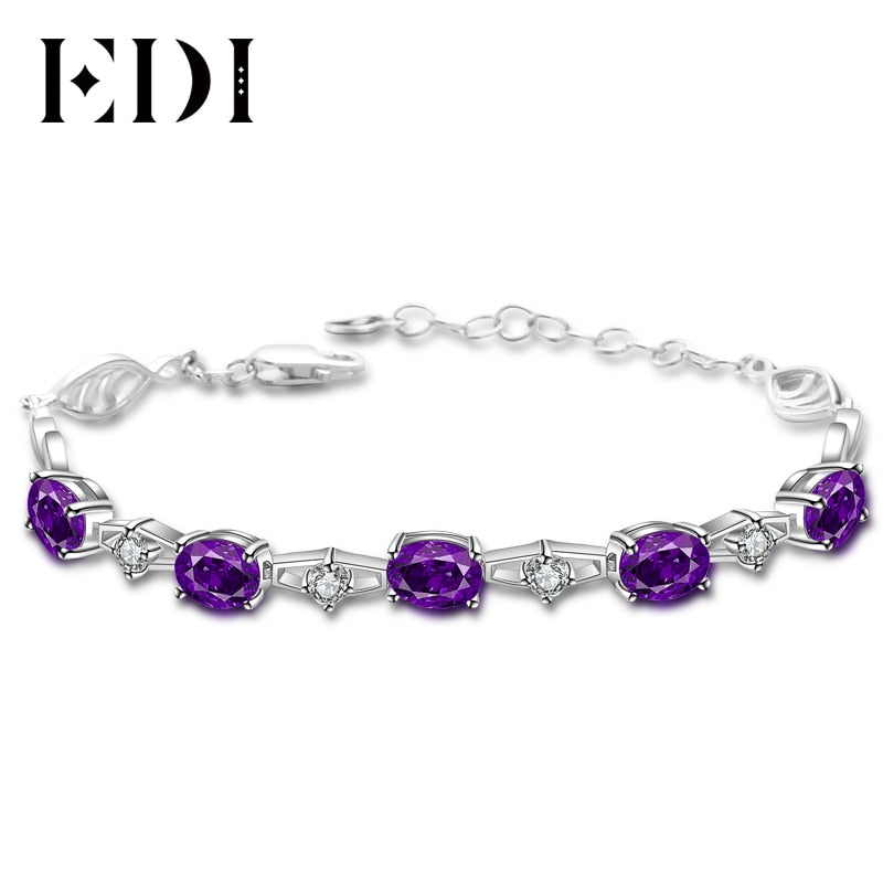 Trendy Women Five Stone Amethyst Bracelet Oval Cut Purple Crystal 925 Sterling Silver Bracelets For Wedding Jewelry Gift