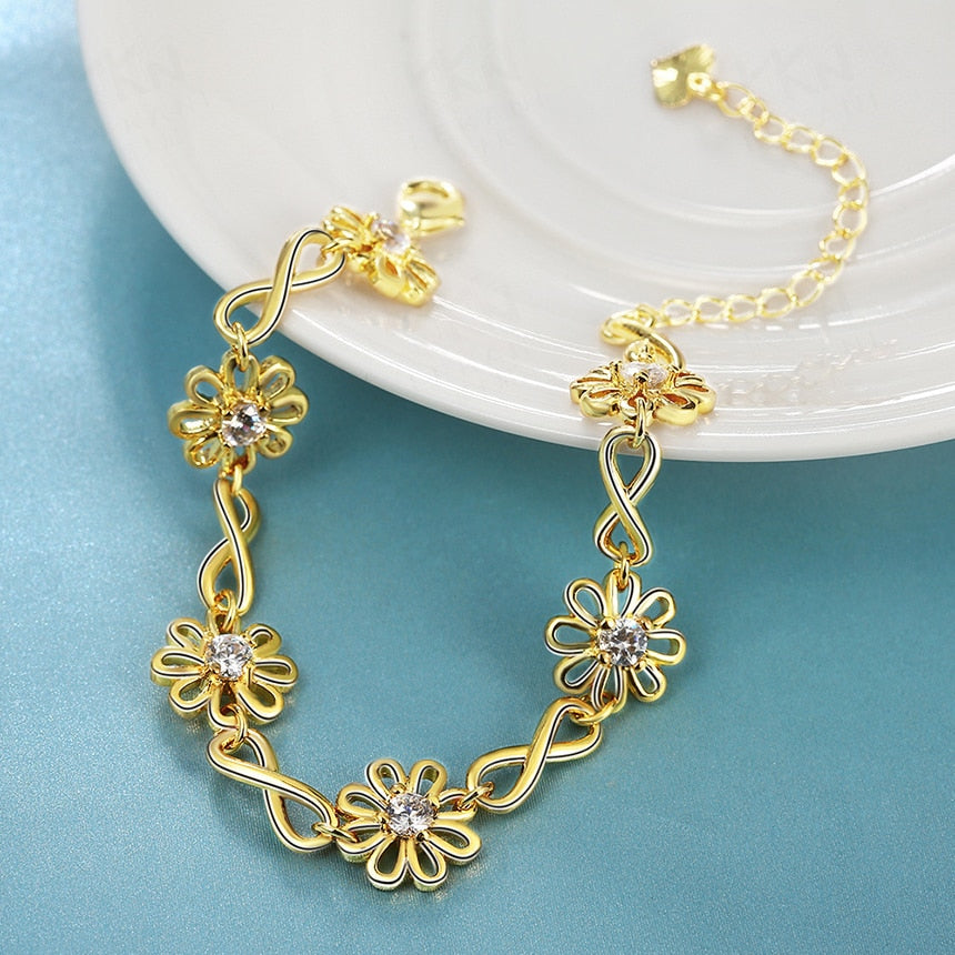 European and American Creative Zircon Bracelets for Women Hot 14K Rose Gold Fine Jewelry Hand Ornament Flowers and Plants Style