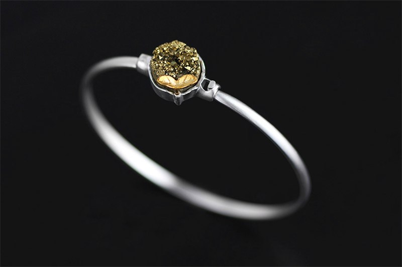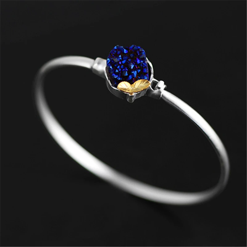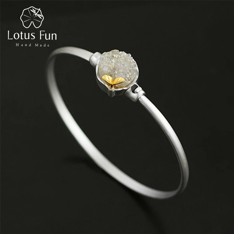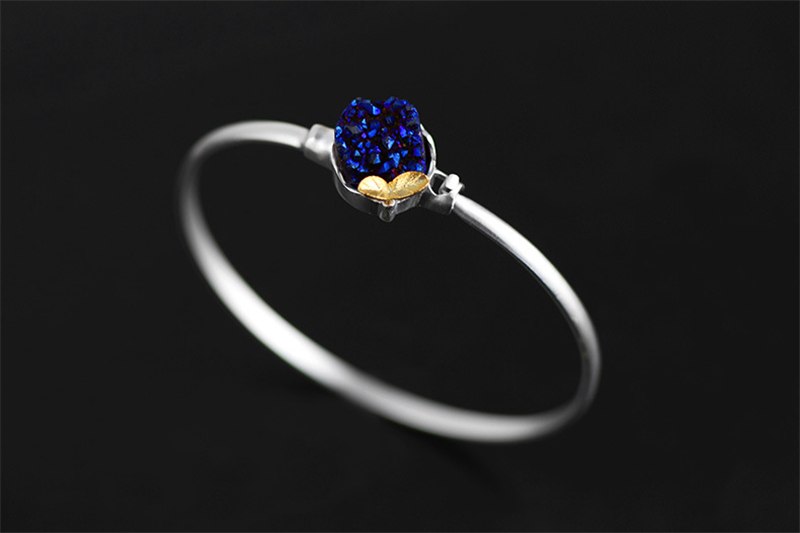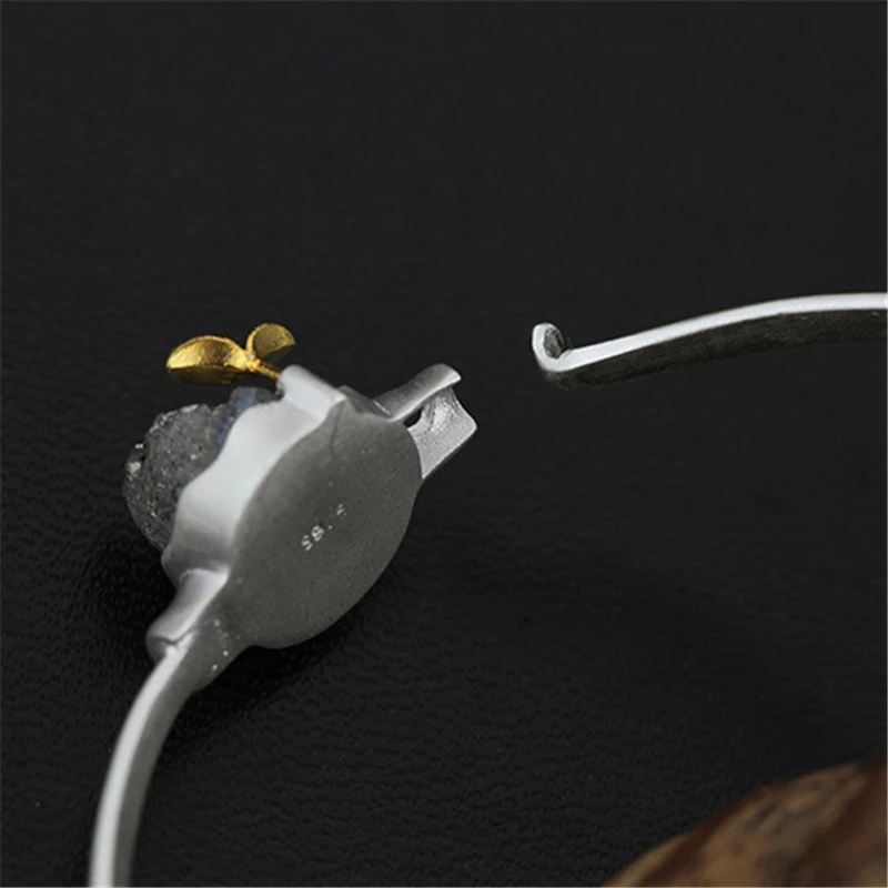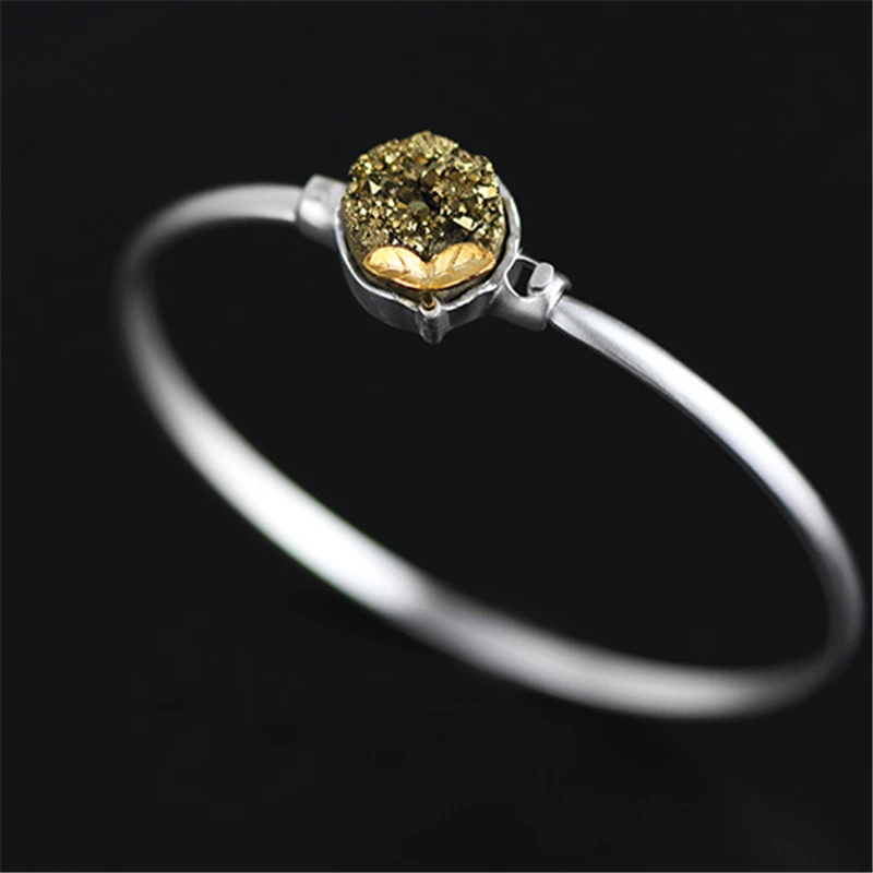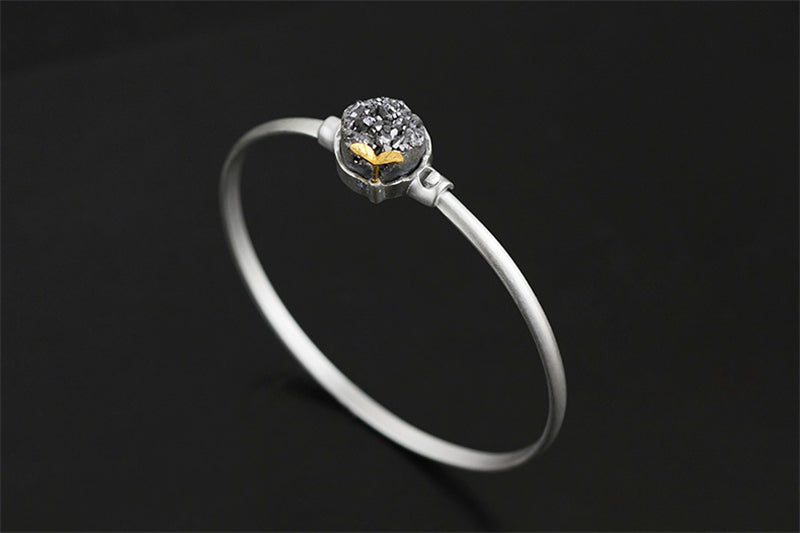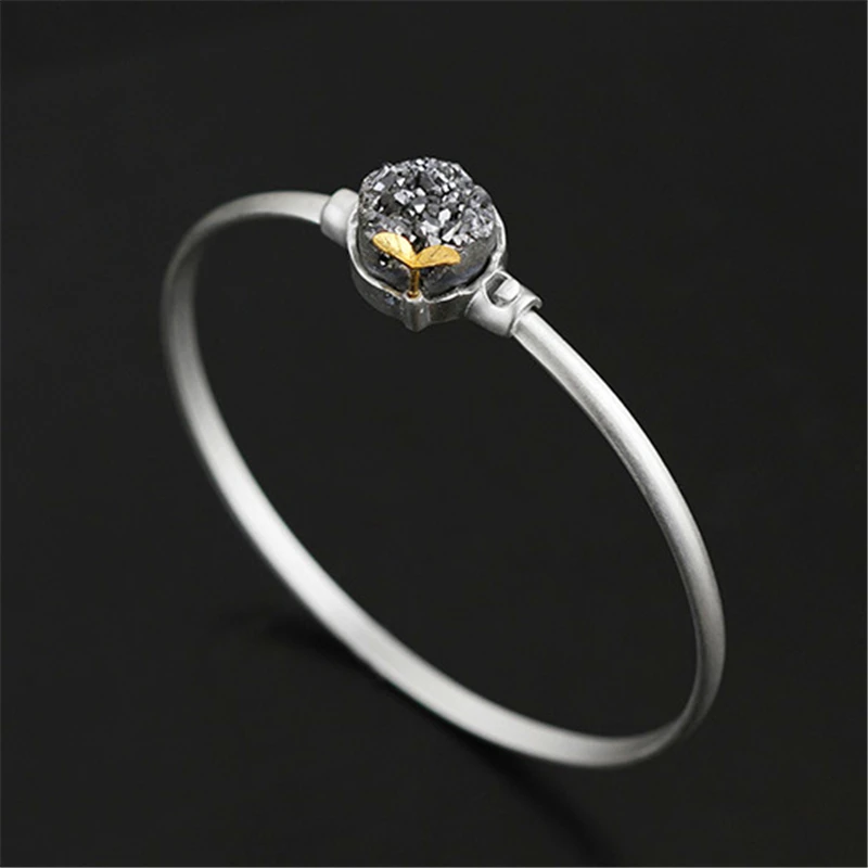 Real 925 Sterling Silver Natural Crystal Handmade Fine Jewelry Lovely Sprouting Plant Design Bangle for Women