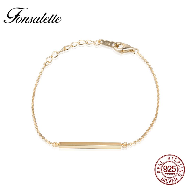 925 Sterling Silver Bar Bracelet Minima Line Bracelet Chain Simpli Stick Bracelets&Bangles gift ZK30