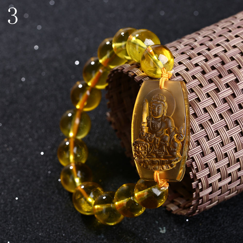 Forkup Women Fine Bracelets Citrine Beaded Chain Religious Hand Chain Buddhism Amulet Carved Stone Jewelry Lucky Chain Hand Made