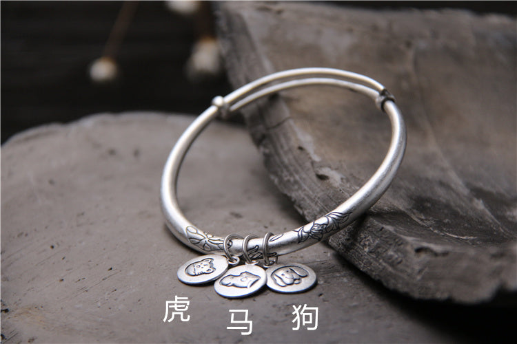 Antiqued S999 Expandable Wire Bangle Three Chinese Zodiac Charms Bracelet Wire Bangle Size Adjustble 5mm 31G TYC101