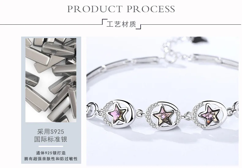 925 Sterling Silver Shinning Star Crystal CZ Pendant Bracelet Charm Chain Link Bangle Women Jewelry Birthd Party Gift
