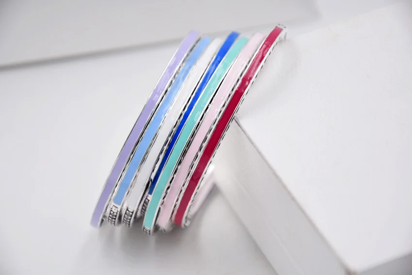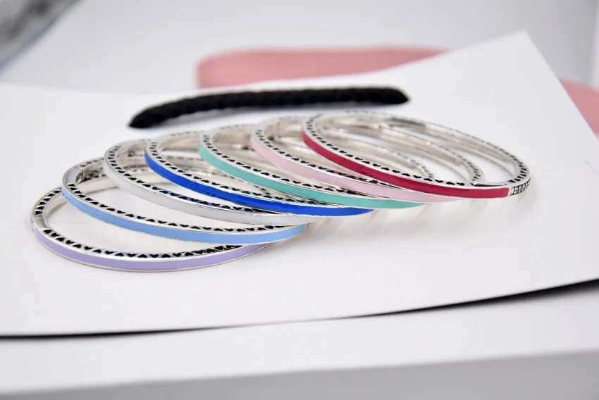 2020 New 7color really 925 sterling silver enamel CZ heart-shaped Fit Europe pan Bracelet For Women Jewelry Charm Bangle