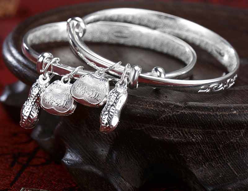 pure sliver silversmith 999 children's silver bracelets long-life round bracelet bells silver bracelet