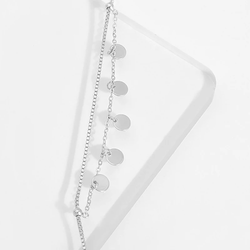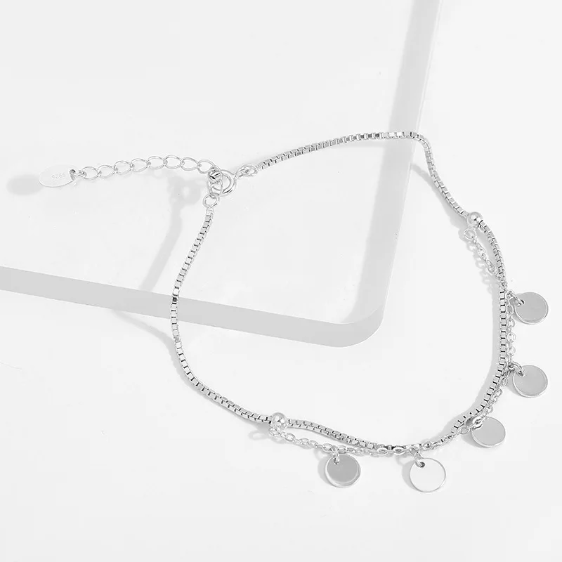 New Elegant Fine Jewelry S925 Sterling Silver Box Chain Charming Bracelet with 5pcs Round Slices Bangle for Women Party