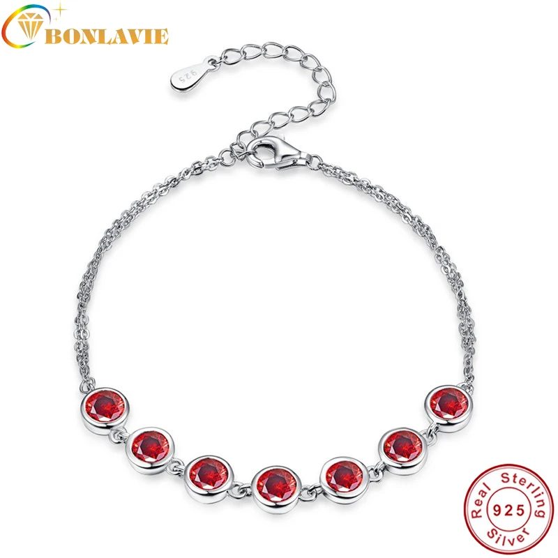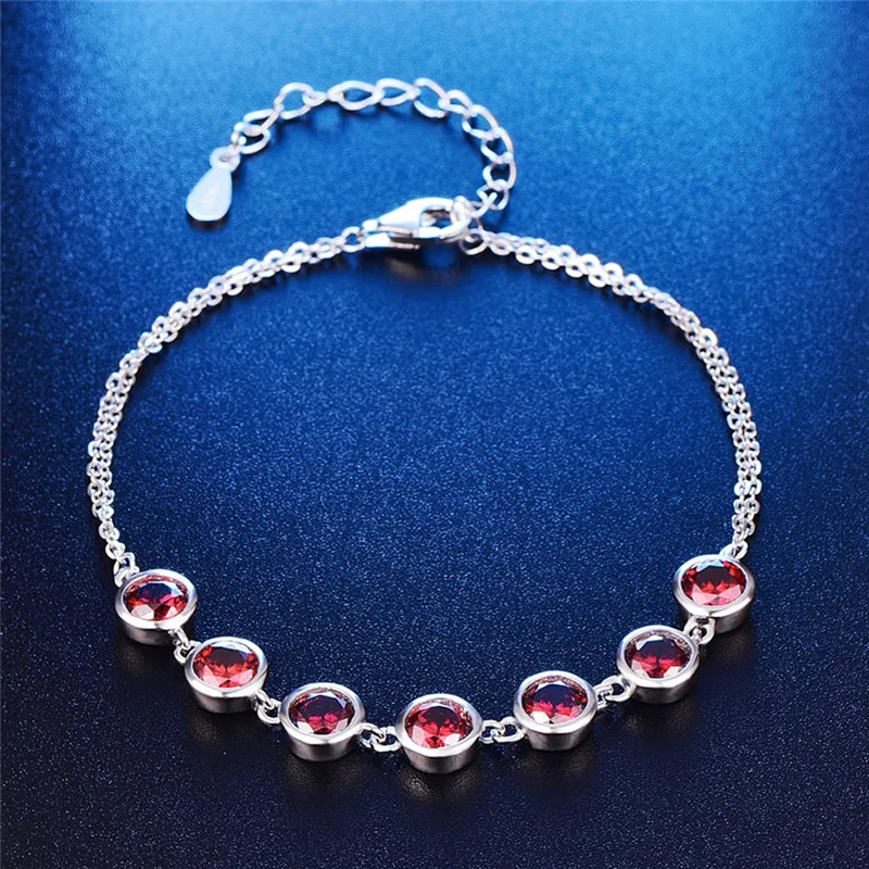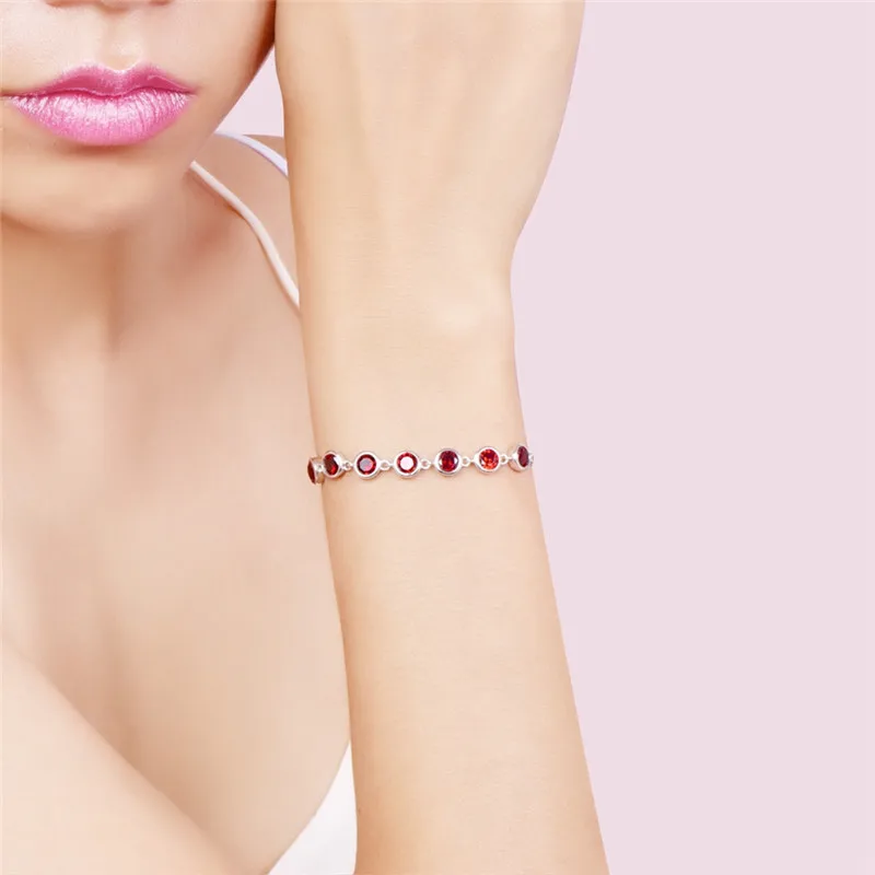 Red Garnet 925 Sterling Silver Jewelry For Women Adjustable Link Chain Bracelet Length 7.99inch Hight Quality