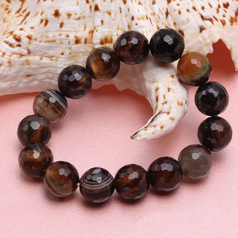 Agate Bracelet 13mm Round Black Faceted Agate Bracelet 7.5