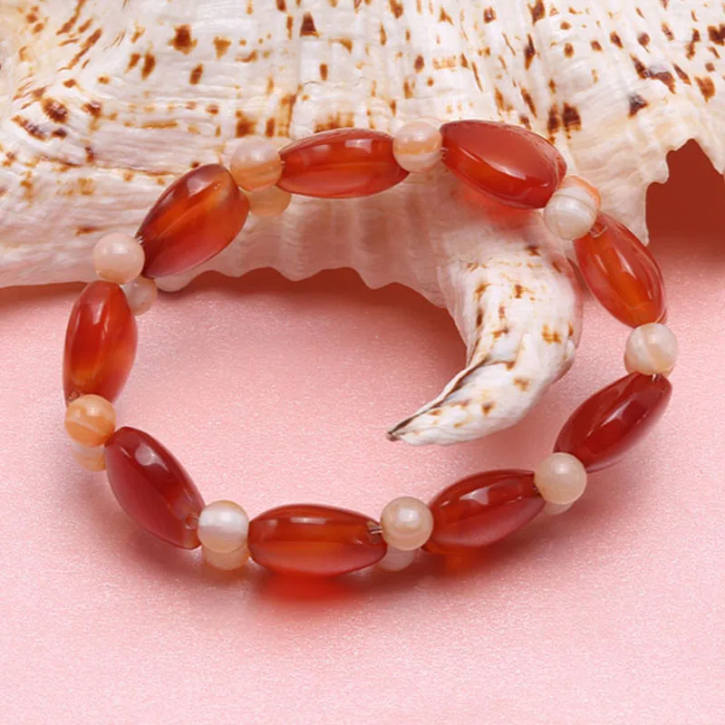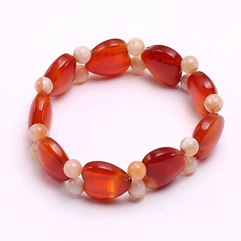 Agate Bracelet 6mm Red Orange Round and Heart-shaped Red Agate Bracelet 8