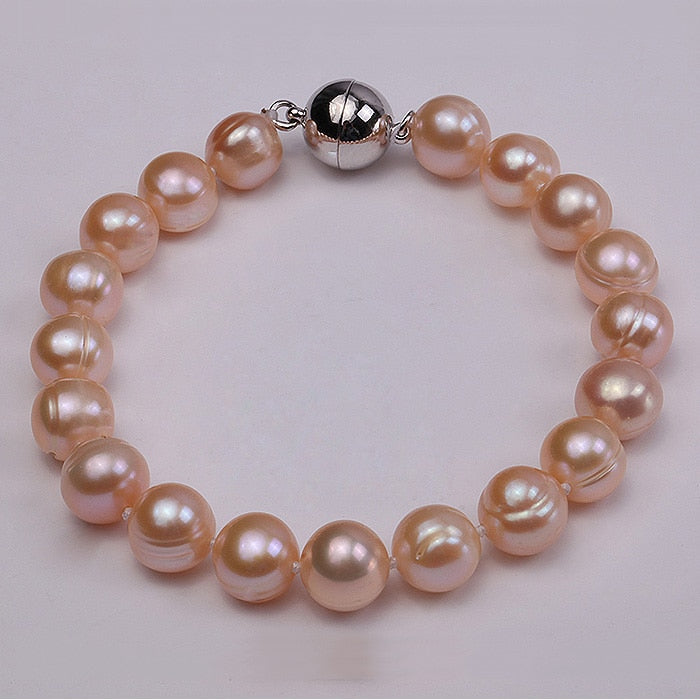Pearl Braceletes for Women 8-13mm Pink Round Pearl Bracelet Jewelry 7.5