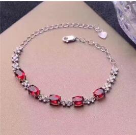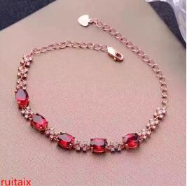 fine jewelry 925 pure silver inlaid with Natural Garnet Bracelet, gold and silver jewelry.AAB