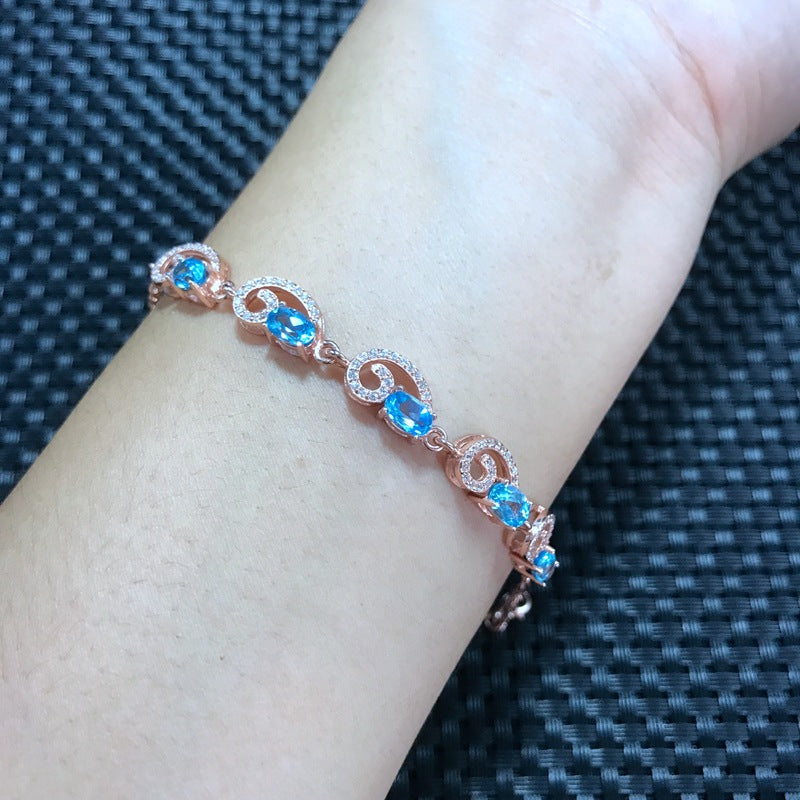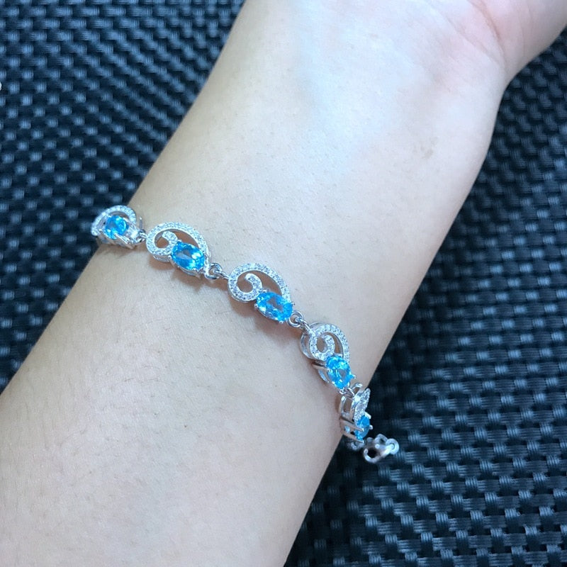 Fine jewelry New custom 925 sterling silver inlaid natural Topaz Stone Bracelet