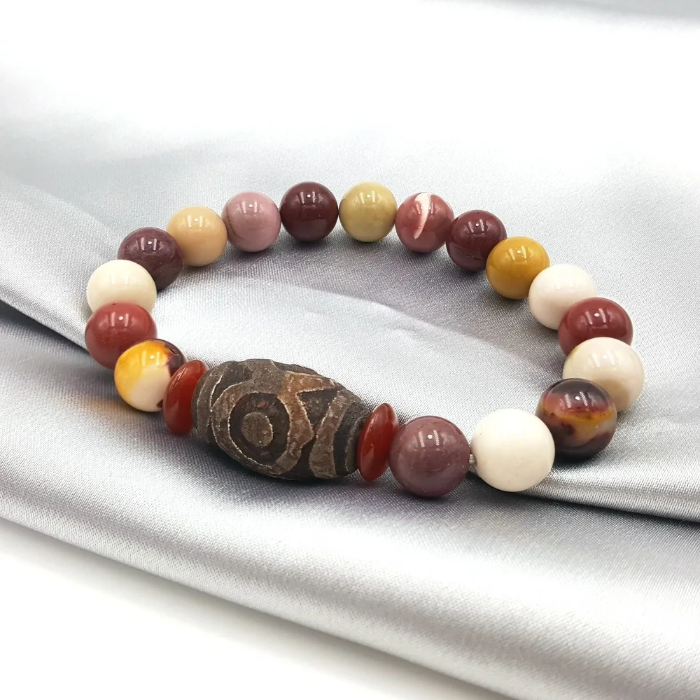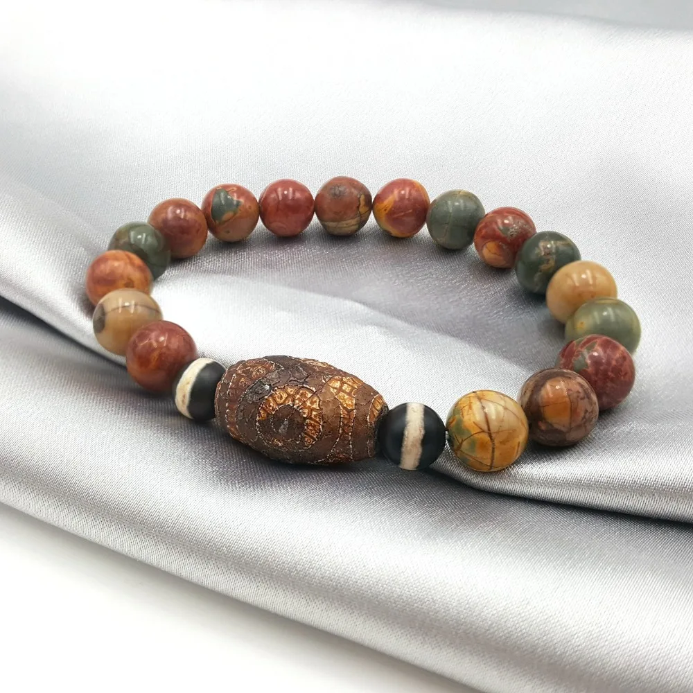 Natural Stone Picasso Jasper Labradorite etc. With Carved Tibetan Three Eye DZI Beads Bracelet For Men Accessories Gift