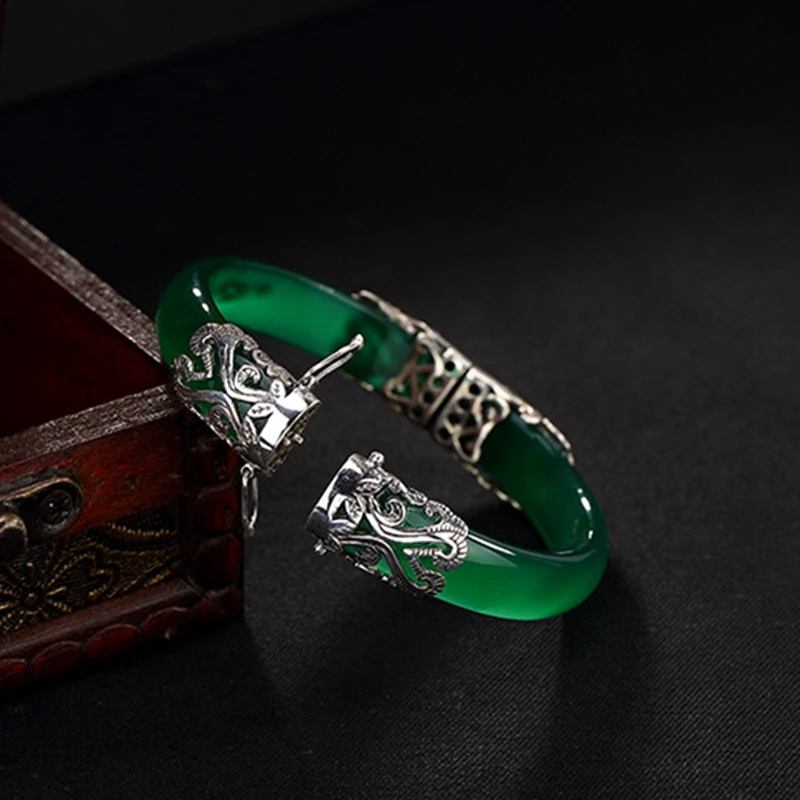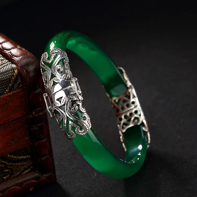 925 sterling silver jade bangles handmade fashion charms Pattern Chalcedony jade bangles for women wild jade jewelry