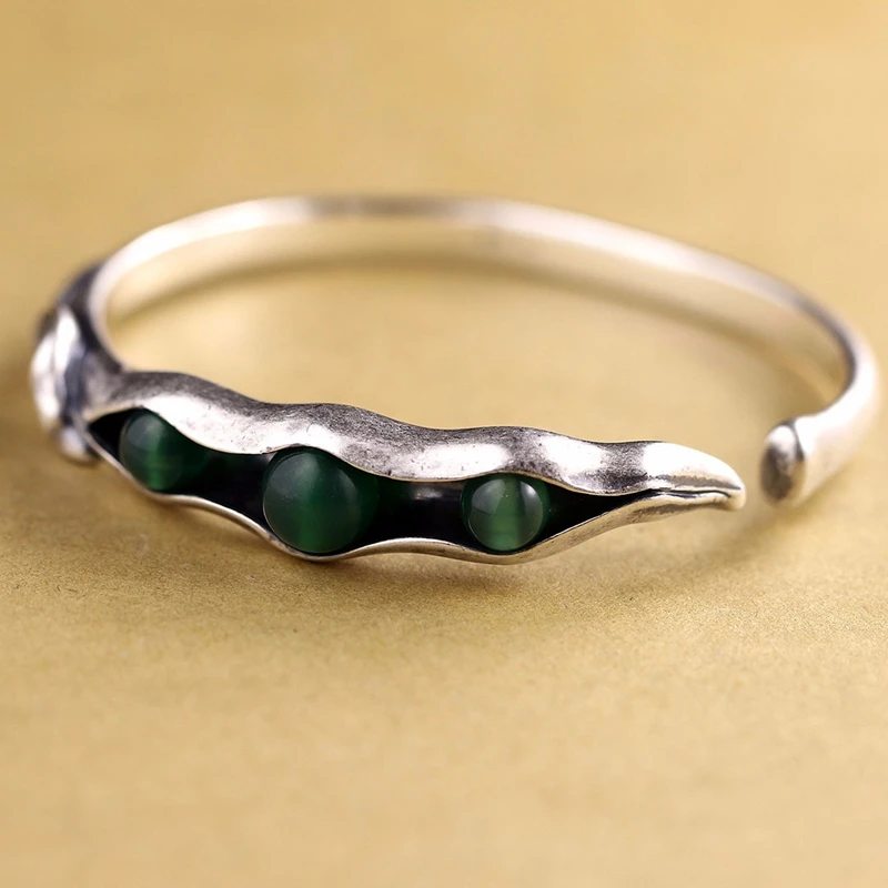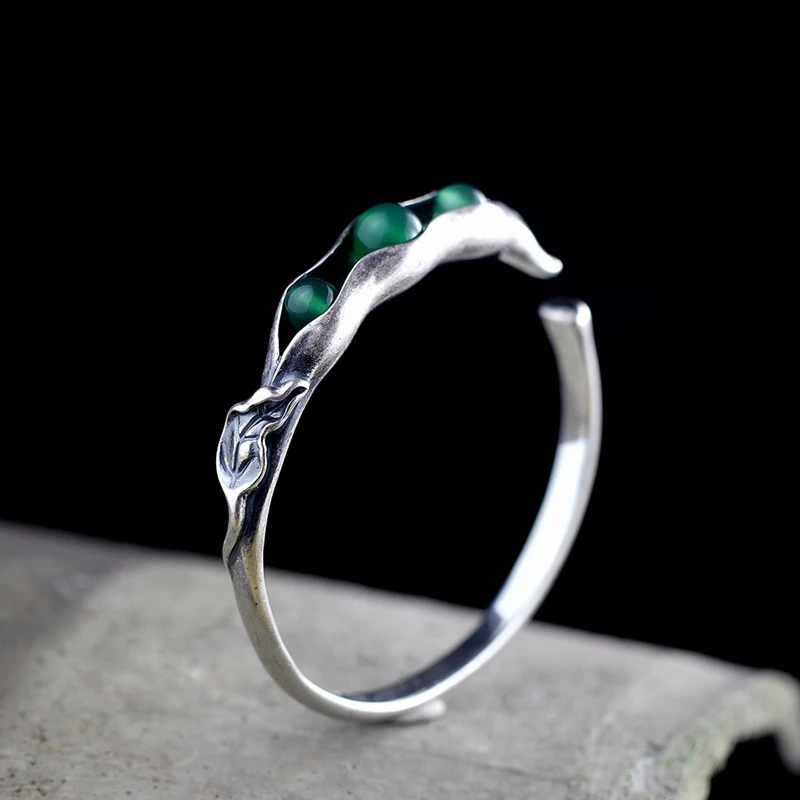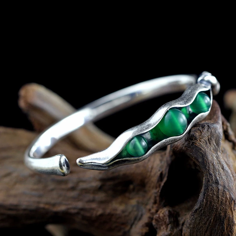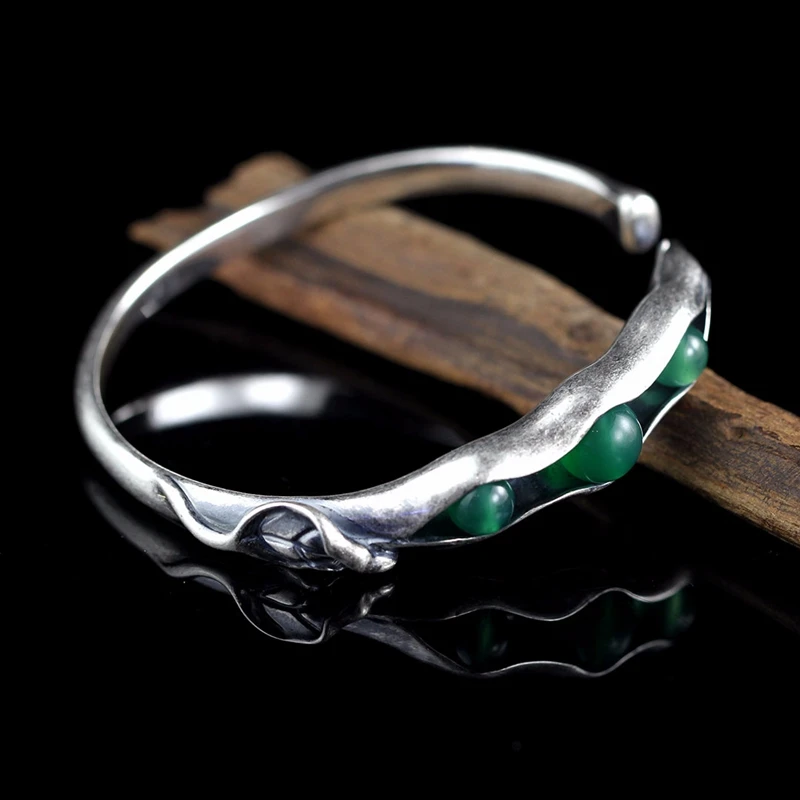 925 sterling silver jade bangles handmade original design beans open jade bangles for women charms fashion jade jewelry
