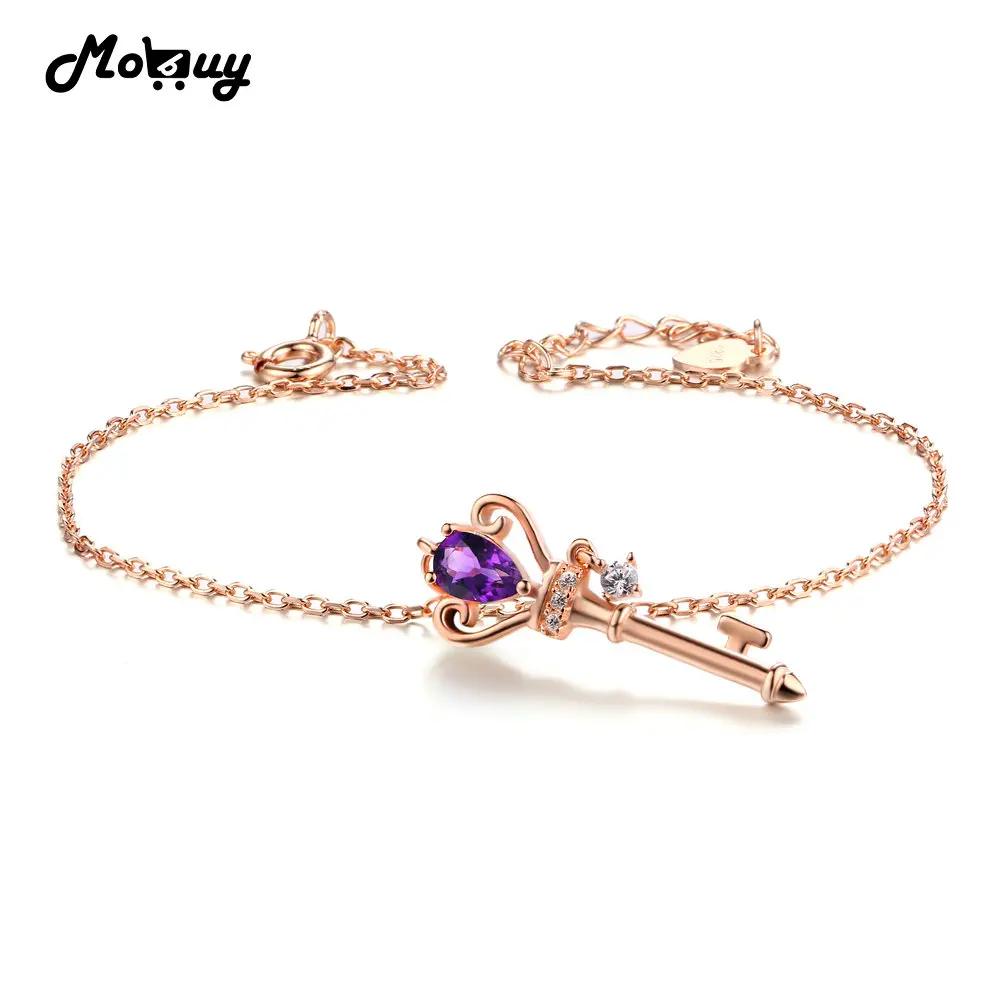MBHI024 Gemstone Amethyst Romantic Crown Key Bracelets & Bangles 925 Sterling-Silver-Jewelry Rose Gold Plated For Women