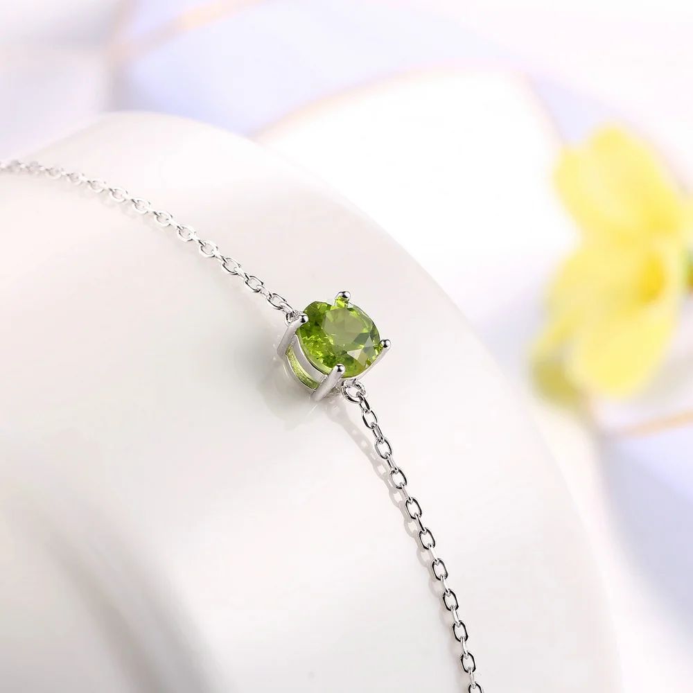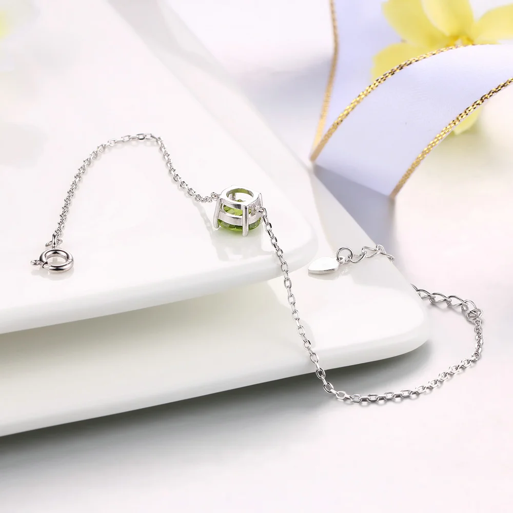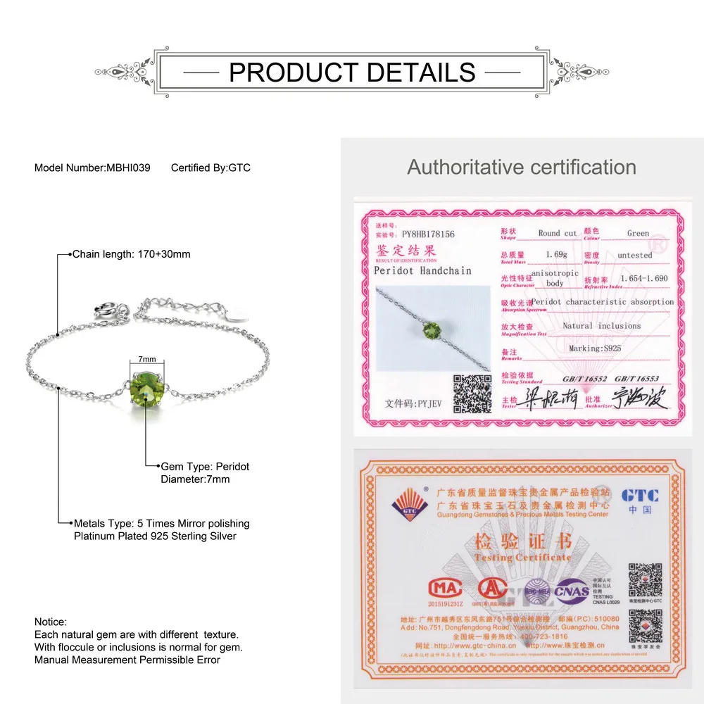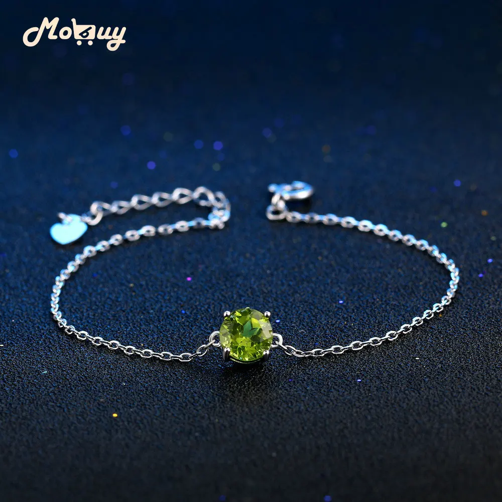 MBHI039 Flat Natural Gemstone Peridot Bracelets & Bangles 925 Sterling-Silver-Jewelry White Gold Plated Chain For Women