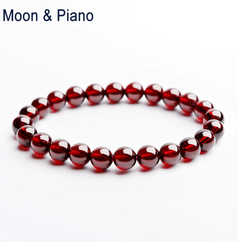 Moon & Piano Wine Red Garnet Bracelet Charm Natural Stone Beads Bracelet Lovers Gift Anniversary Nice Fine Jewelry