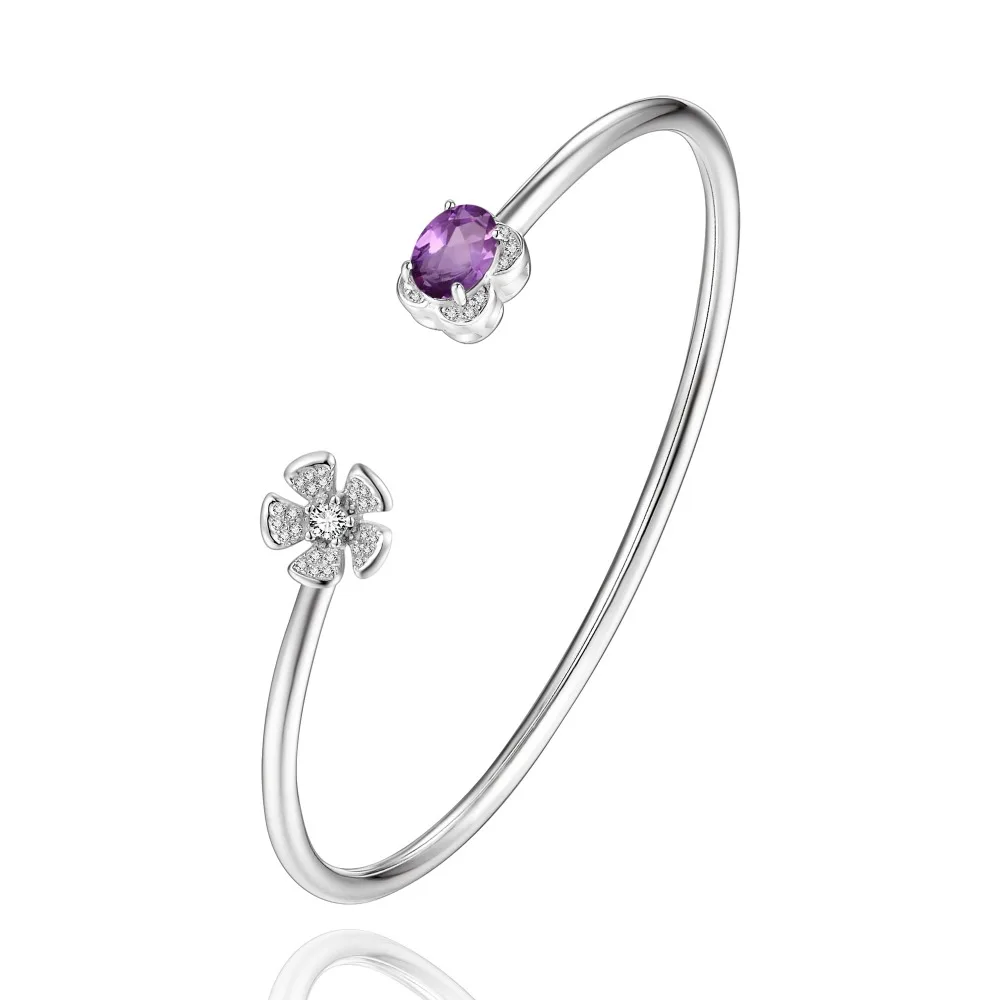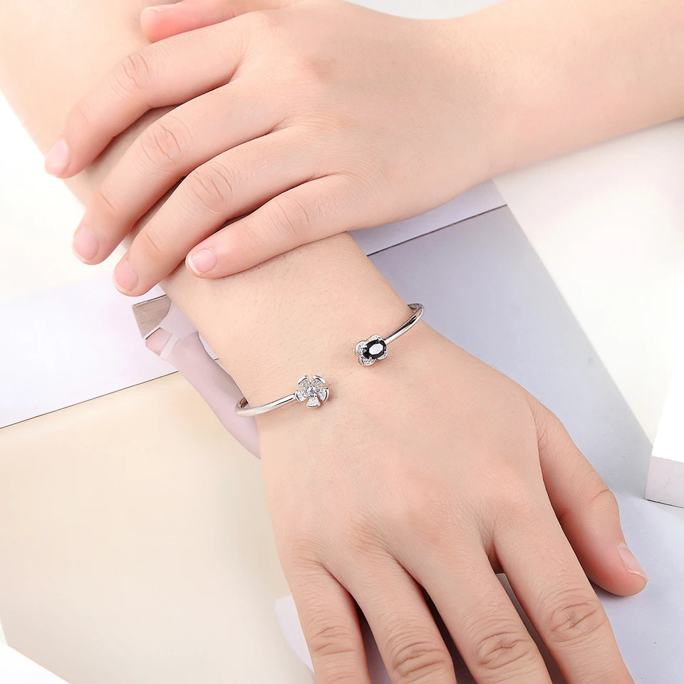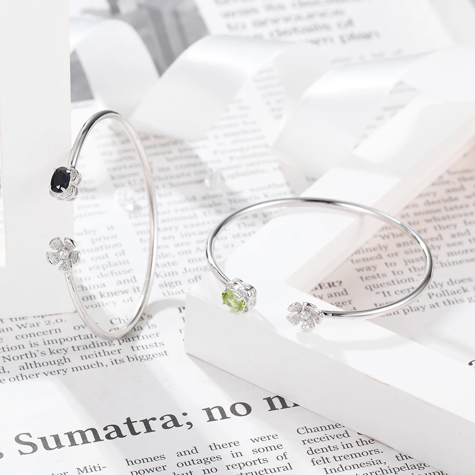 Natural Gemstone Popular Flower Cuff Adjustable Bracelets & Bangles for Women & Girls 925 Sterling Silver Fine Jewelry