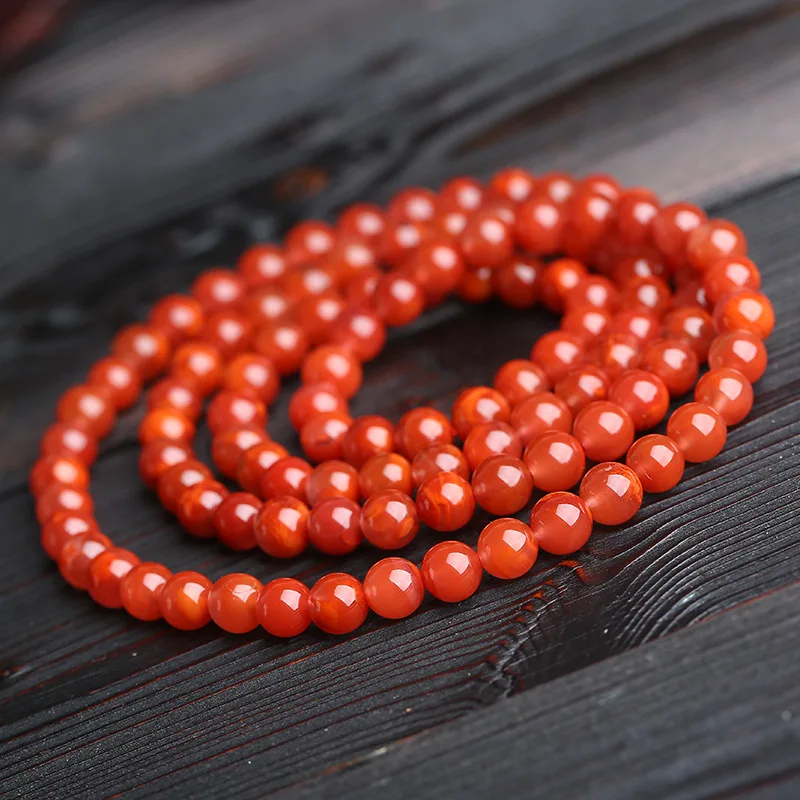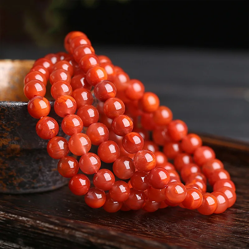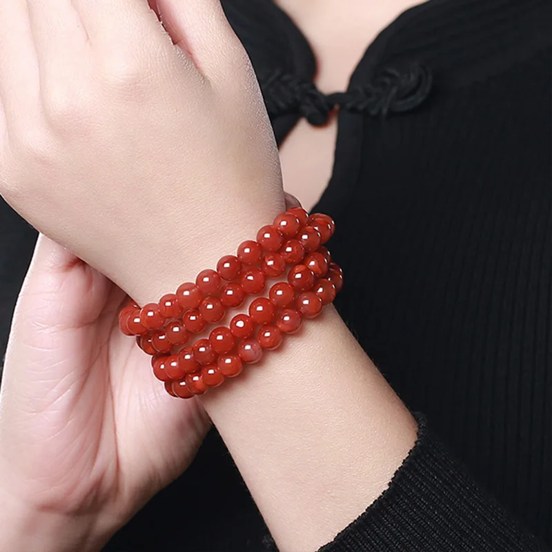 Natural Agate Beaded Bracelet 108 Beads Multi Layers Flame Red Gemstone Reiki Meditation Stretch Bracelet Rosary Prayer Jewelry