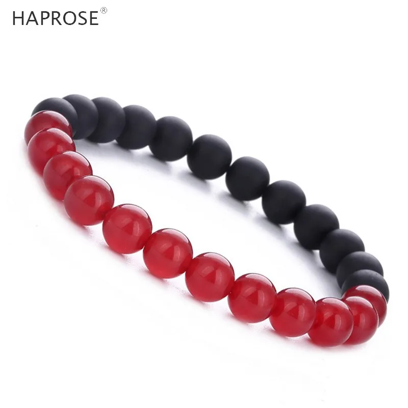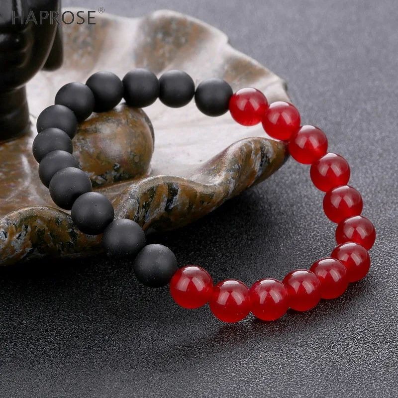 Natural Agate Bracelet 8mm Creative Jewelry Woman Dancing Bracelet Red and Black Gemstone Scrub Agate Couple Bracelet
