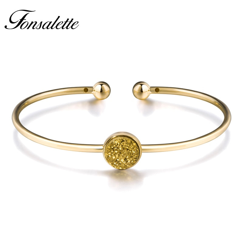 Natural Agate Druzy Elastic Cuff Bangles Round Circle Disc Crystal Drusy Bangle&Bracelet Wonman Jewelry Mother's Gift ZK40
