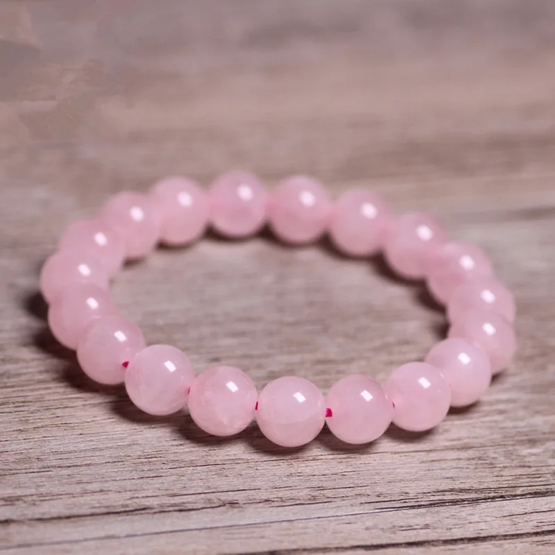 Natural Madagascar Rose Quartz Bracelets Round Beads Bangle Men Women Pink Crystal Quartz Gemstone Jewelry Love Energy Gift