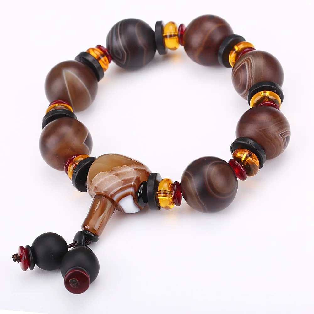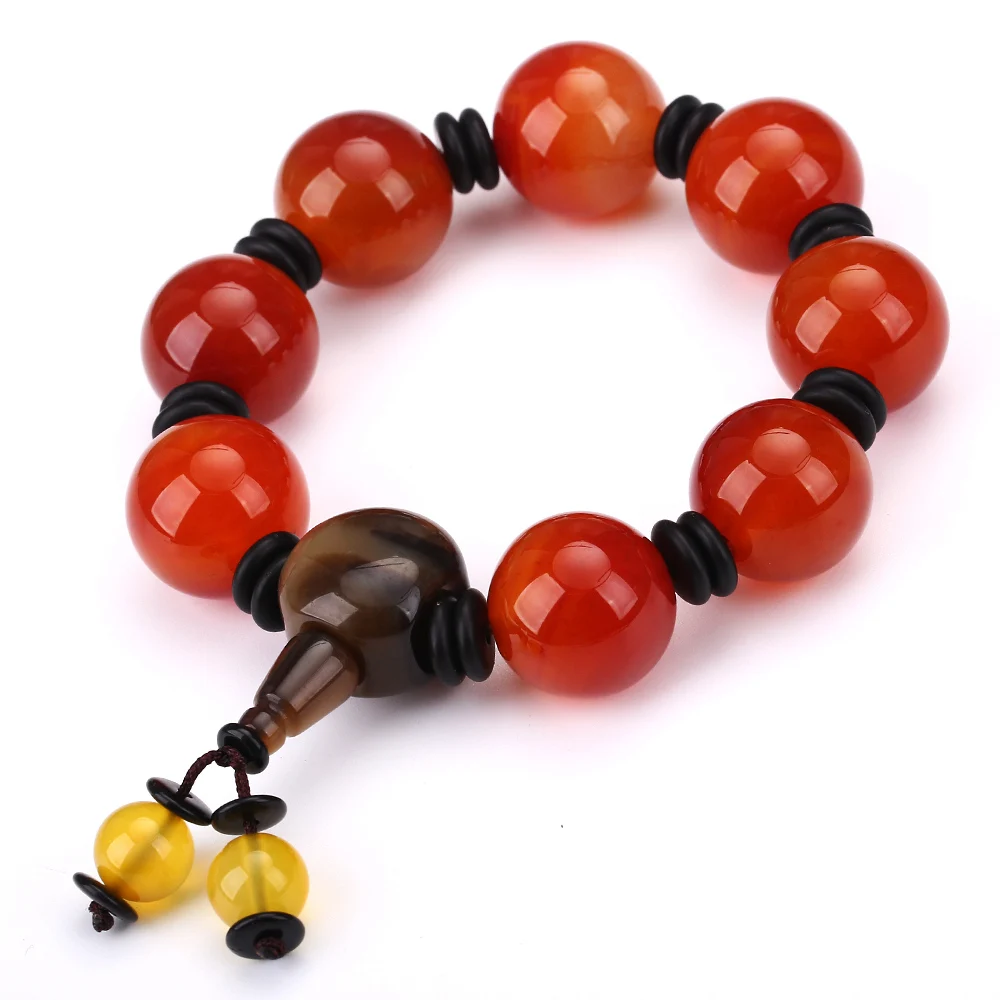 Natural Red Agate Bracelet Genuine Beads For Unisex Obsidian 3 Eyes Tibetan Dzi Beads Elastic Bracelet For Women Healing Crystal