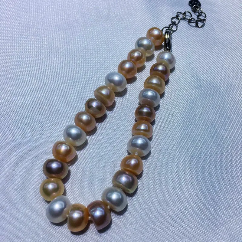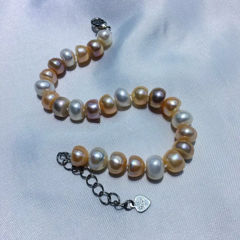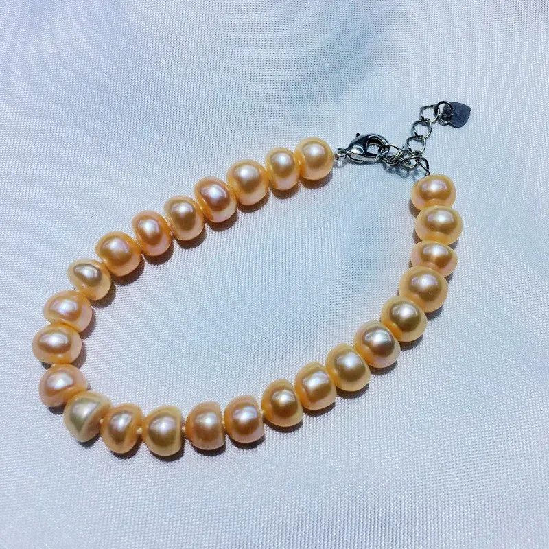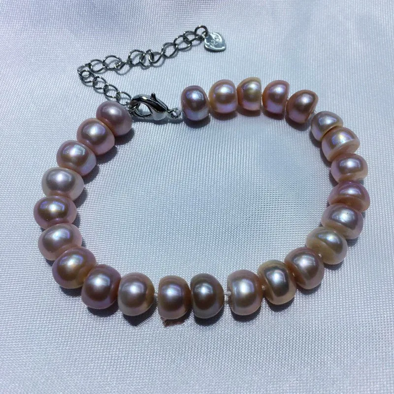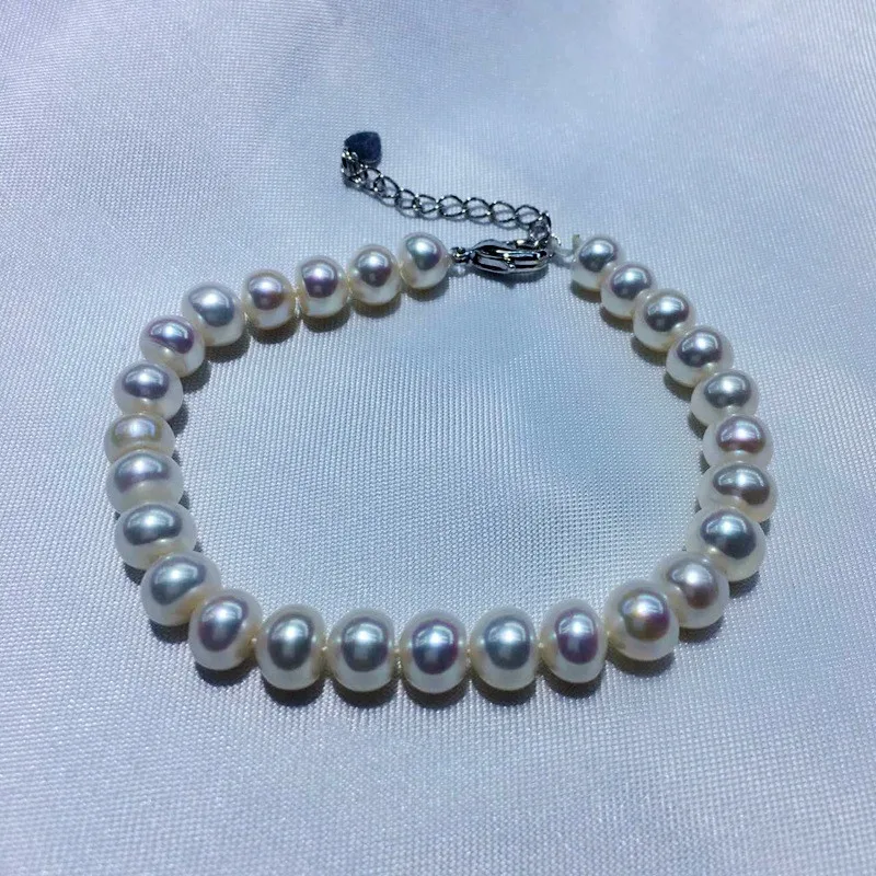 Natural Semiround Pearls Jewelry , 7-8mm Bread Round Pearl Bracelet 17cm Woman Beads Bangles Bracelets for Wedding