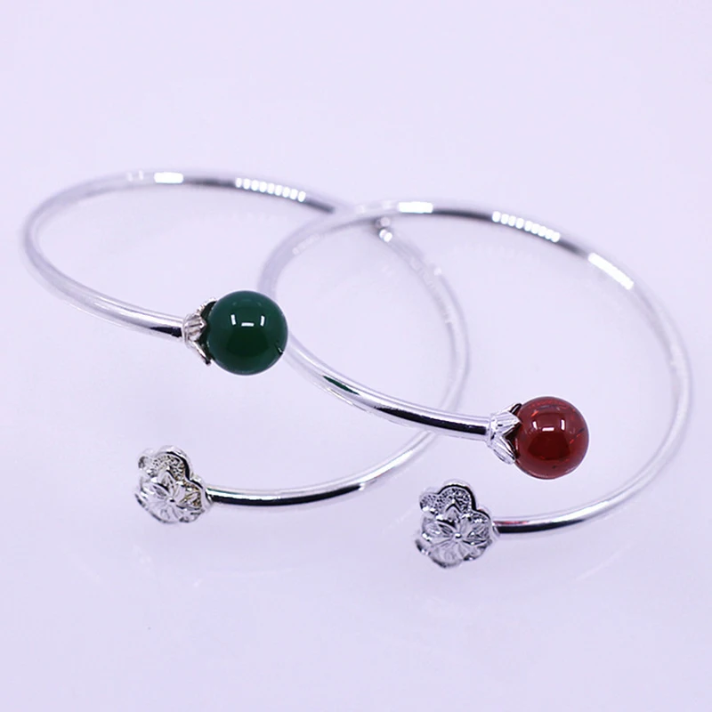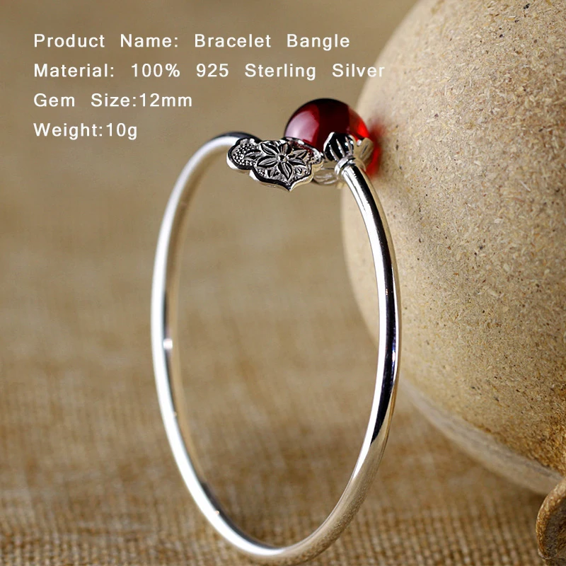 Natural Stone Red Garnet Women Bracelets & Bangles 100% Sterling Silver 925 Bracelets For Women Punk Flower Couple Jewelry SB16