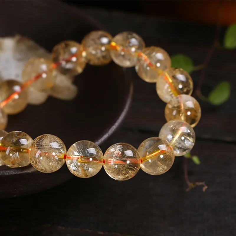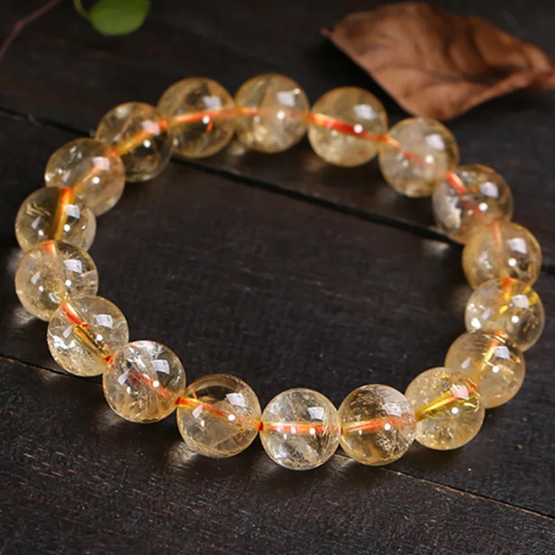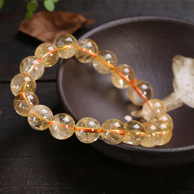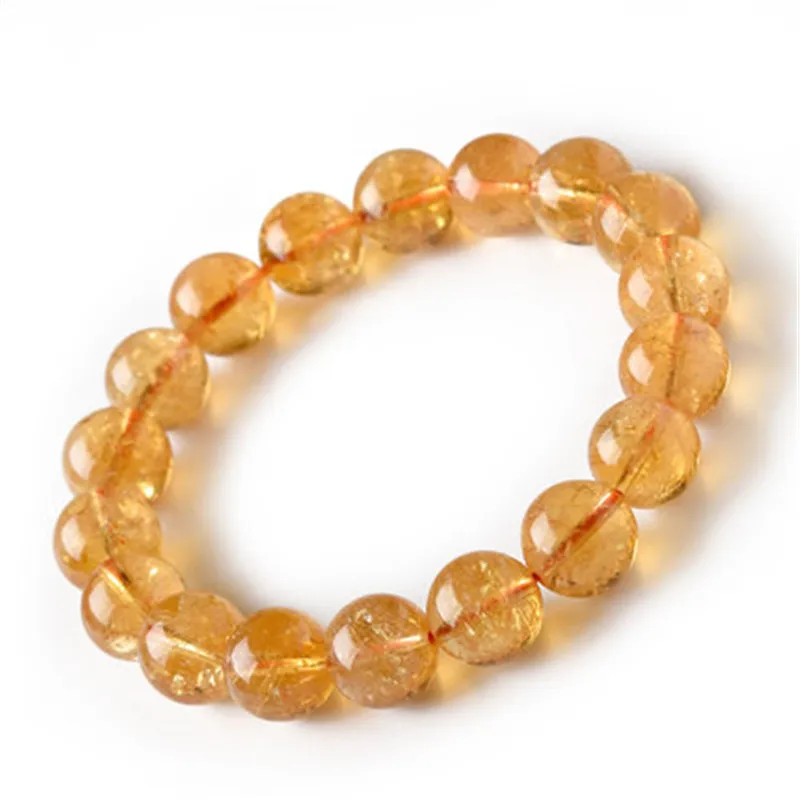 Natural Stones Yellow Brazil Citrine Bracelets Round Beads Bangle Creastly Material Men Women Crystal Jewelry Love Energy Gift