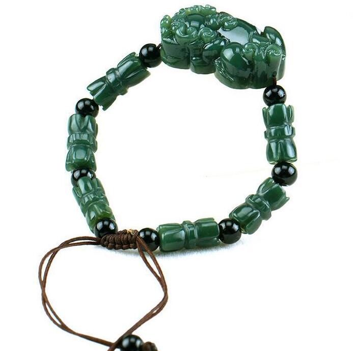 Natural XinJiang hetian jade QingYu Hand catenary hand strings stone Lucky Stretch Elastic Bracelet Fashion Jewelry