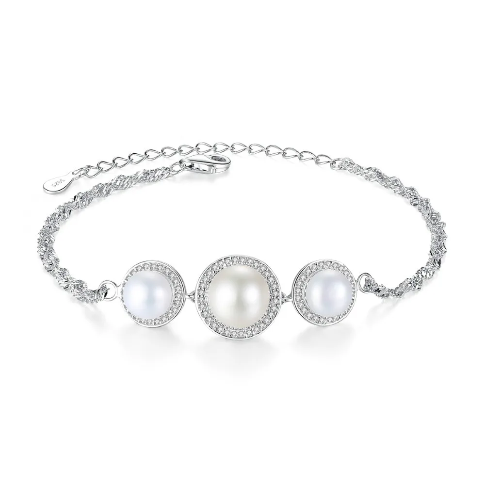 New Arrival Classic Charm Round 925 Sterling Silver Bracelet with 3pcs Natural Pearls Fine Jewelry Hot001