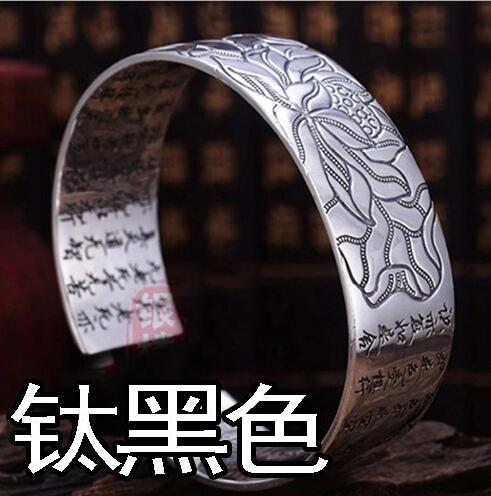 Wholesale fashion Lotus heart sutra woman star Fine 990 Sterling Silver opening bracelet gift Bangles SZ24
