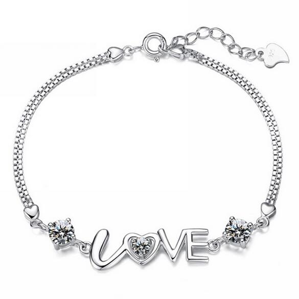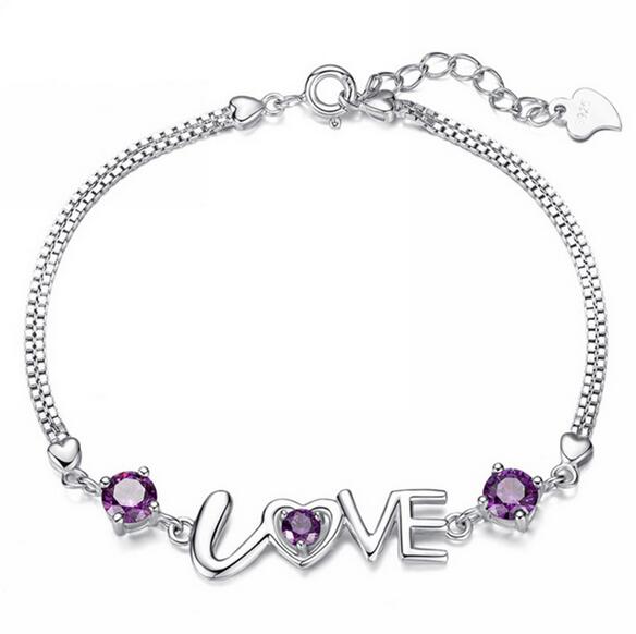 Wholesale Fashion present High Quality AAA zircon Amethyst 925 Sterling Silver Romantic Love Women Bracelets Bangles SZ29