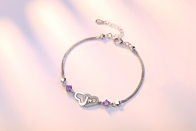 Wholesale Heart Fashion Sweet Woman Girl Party Gift Mutual Affinity White Purple Zircon 925 Sterling Silver Bracelet SZ93