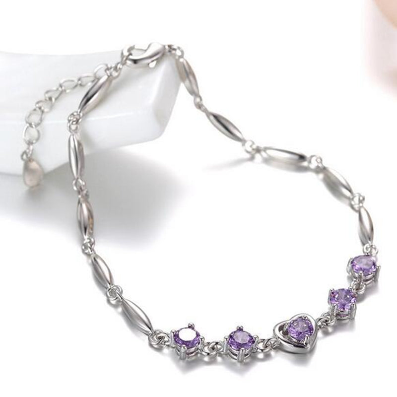 Wholesale Romantic Fashion Woman Couple Girlfriends Party Gift Love Heart White Purple 925 Sterling Silver Bracelet SZ89